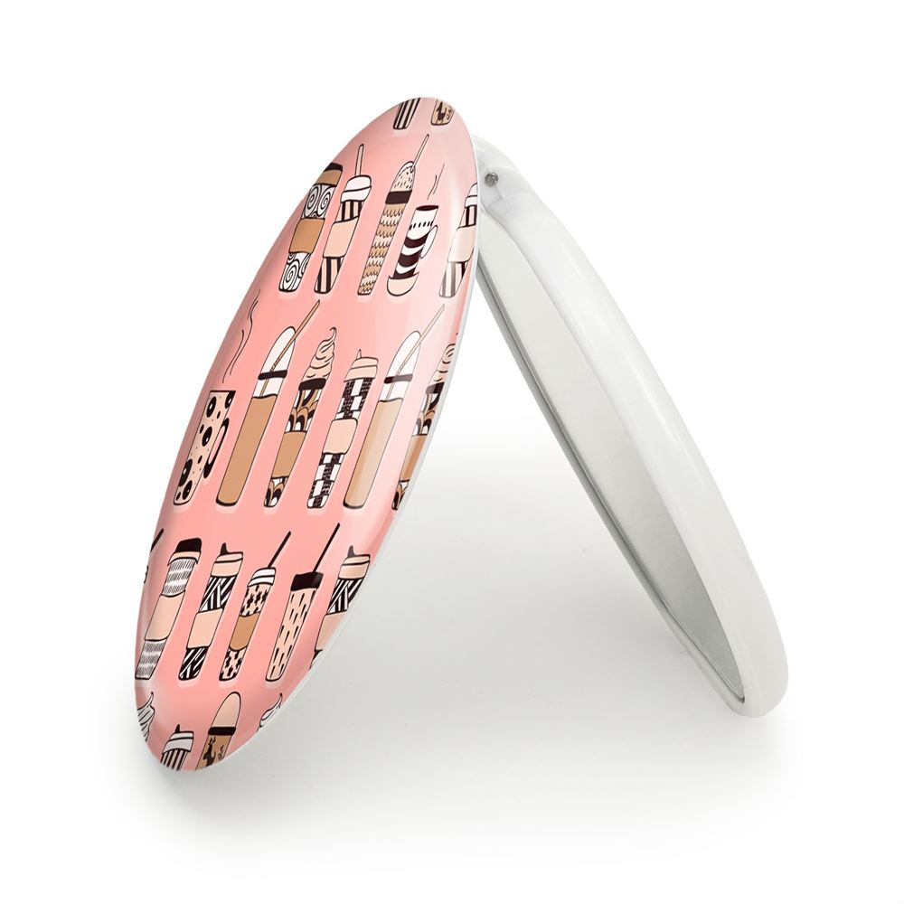آینه های تاشو کافی شاپ قهوه خندالو، از جنس پلاستیک فشرده ABS تولید شده و به رنگ سفید می باشد. یکی از آینه ها ابعاد واقعی را نشان داده و دیگری با قابلیت بزرگنمایی، جزئیات را بهتر نمایش می دهد.