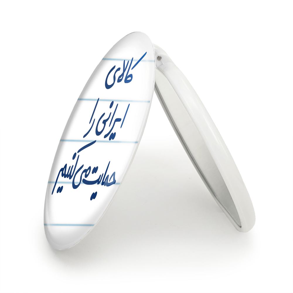 آینه های تاشو کالای ایرانی را حمایت می کنیم خندالو، از جنس پلاستیک فشرده ABS تولید شده و به رنگ سفید می باشد. یکی از آینه ها ابعاد واقعی را نشان داده و دیگری با قابلیت بزرگنمایی، جزئیات را بهتر نمایش می دهد. ابعاد هر یک از آینه ها، دایره ای به قطر 7.5 سانت می باشد که نه خیلی بزرگ و غیر قابل استفاده در کیف آرایشی ست و نه خیلی کوچک که تصویر خاصی در آن مشاهده نشود. آینه تاشو کالای ایرانی را حمایت می کنیم سایزی استاندارد و کارآمد دارد و در هر کیفی جا میگیرد. چاپ طرح بوسیله چاپگرهای دیجیتال شش رنگ با شفافیت و کیفیتی مثال زدنی بر روی یک وجه از بدنه ی آینه انجام گرفته و با روکش لمینت حرارتی پوشیده شده که در مقابل آسیب و خط و خش مقاوم بوده و کیفیت بالایی دارد. درب آینه بوسیله قفل بدنه ی آن، باز نمی ماند و کاملا بسته می شود و مناسب قرار گیری در کیف لوازم آرایش و کیف های کوچک دستی نیز هست. آینه های تاشو کالای ایرانی را حمایت می کنیم خندالو با تنوع طرحی بسیار بالا، سلیقه هر نوع مخاطبی را تامین میکند.
