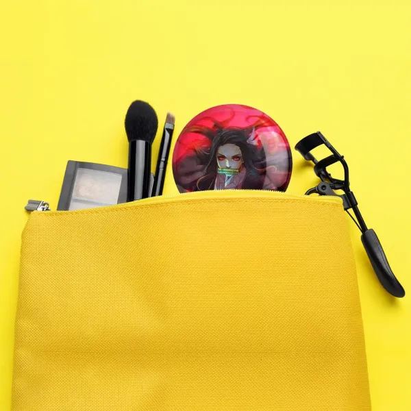 آینه های تاشو کامادو نزوکو انیمه شیطان کش خندالو، از جنس پلاستیک فشرده ABS تولید شده و به رنگ سفید می باشد. یکی از آینه ها ابعاد واقعی را نشان داده و دیگری با قابلیت بزرگنمایی، جزئیات را بهتر نمایش می دهد. ابعاد هر یک از آینه ها، دایره ای به قطر 7.5 سانت می باشد که نه خیلی بزرگ و غیر قابل استفاده در کیف آرایشی ست و نه خیلی کوچک که تصویر خاصی در آن مشاهده نشود. آینه تاشو کامادو نزوکو انیمه شیطان کش سایزی استاندارد و کارآمد دارد و در هر کیفی جا میگیرد. چاپ طرح بوسیله چاپگرهای دیجیتال شش رنگ با شفافیت و کیفیتی مثال زدنی بر روی یک وجه از بدنه ی آینه انجام گرفته و با روکش لمینت حرارتی پوشیده شده که در مقابل آسیب و خط و خش مقاوم بوده و کیفیت بالایی دارد. درب آینه بوسیله قفل بدنه ی آن، باز نمی ماند و کاملا بسته می شود و مناسب قرار گیری در کیف لوازم آرایش و کیف های کوچک دستی نیز هست. آینه های تاشو کامادو نزوکو انیمه شیطان کش خندالو با تنوع طرحی بسیار بالا، سلیقه هر نوع مخاطبی را تامین میکند.