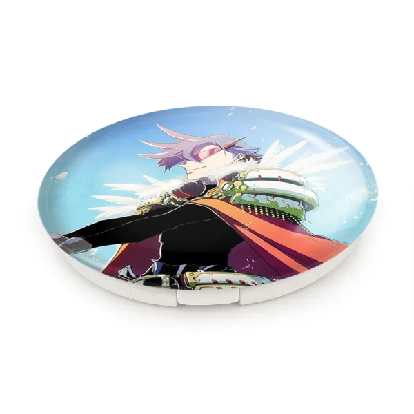 آینه های تاشو کامینا انیمه گورن لاگان خندالو، از جنس پلاستیک فشرده ABS تولید شده و به رنگ سفید می باشد. یکی از آینه ها ابعاد واقعی را نشان داده و دیگری با قابلیت بزرگنمایی، جزئیات را بهتر نمایش می دهد. ابعاد هر یک از آینه ها، دایره ای به قطر 7.5 سانت می باشد که نه خیلی بزرگ و غیر قابل استفاده در کیف آرایشی ست و نه خیلی کوچک که تصویر خاصی در آن مشاهده نشود. آینه تاشو کامینا انیمه گورن لاگان سایزی استاندارد و کارآمد دارد و در هر کیفی جا میگیرد. چاپ طرح بوسیله چاپگرهای دیجیتال شش رنگ با شفافیت و کیفیتی مثال زدنی بر روی یک وجه از بدنه ی آینه انجام گرفته و با روکش لمینت حرارتی پوشیده شده که در مقابل آسیب و خط و خش مقاوم بوده و کیفیت بالایی دارد. درب آینه بوسیله قفل بدنه ی آن، باز نمی ماند و کاملا بسته می شود و مناسب قرار گیری در کیف لوازم آرایش و کیف های کوچک دستی نیز هست. آینه های تاشو کامینا انیمه گورن لاگان خندالو با تنوع طرحی بسیار بالا، سلیقه هر نوع مخاطبی را تامین میکند.