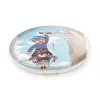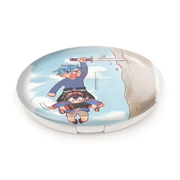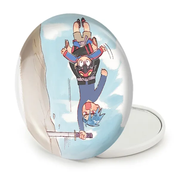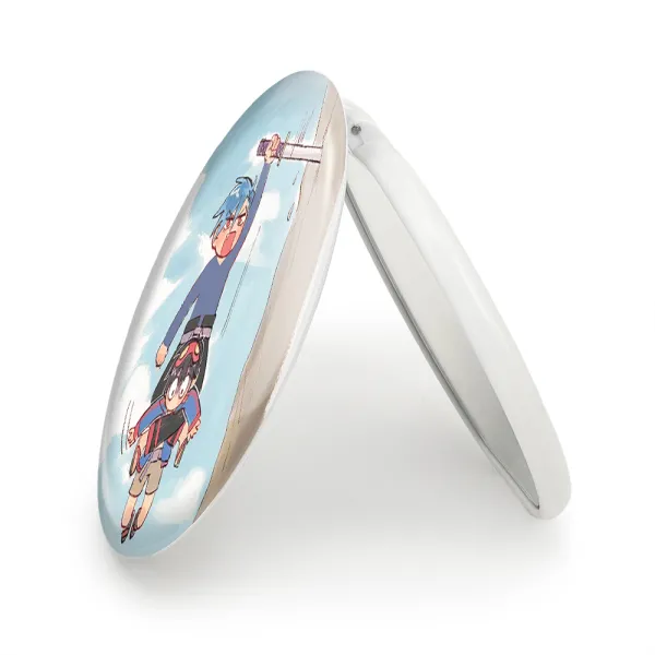 آینه های تاشو کامینا و سیمون انیمه گورن لاگان خندالو، از جنس پلاستیک فشرده ABS تولید شده و به رنگ سفید می باشد. یکی از آینه ها ابعاد واقعی را نشان داده و دیگری با قابلیت بزرگنمایی، جزئیات را بهتر نمایش می دهد. ابعاد هر یک از آینه ها، دایره ای به قطر 7.5 سانت می باشد که نه خیلی بزرگ و غیر قابل استفاده در کیف آرایشی ست و نه خیلی کوچک که تصویر خاصی در آن مشاهده نشود. آینه تاشو کامینا و سیمون انیمه گورن لاگان سایزی استاندارد و کارآمد دارد و در هر کیفی جا میگیرد. چاپ طرح بوسیله چاپگرهای دیجیتال شش رنگ با شفافیت و کیفیتی مثال زدنی بر روی یک وجه از بدنه ی آینه انجام گرفته و با روکش لمینت حرارتی پوشیده شده که در مقابل آسیب و خط و خش مقاوم بوده و کیفیت بالایی دارد. درب آینه بوسیله قفل بدنه ی آن، باز نمی ماند و کاملا بسته می شود و مناسب قرار گیری در کیف لوازم آرایش و کیف های کوچک دستی نیز هست. آینه های تاشو کامینا و سیمون انیمه گورن لاگان خندالو با تنوع طرحی بسیار بالا، سلیقه هر نوع مخاطبی را تامین میکند.