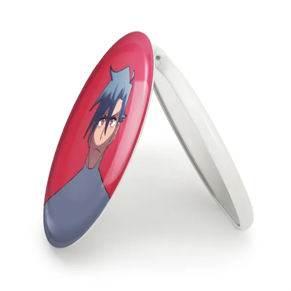 آینه های تاشو کامینا و سیمون انیمه گورن لاگان خندالو، از جنس پلاستیک فشرده ABS تولید شده و به رنگ سفید می باشد. یکی از آینه ها ابعاد واقعی را نشان داده و دیگری با قابلیت بزرگنمایی، جزئیات را بهتر نمایش می دهد. ابعاد هر یک از آینه ها، دایره ای به قطر 7.5 سانت می باشد که نه خیلی بزرگ و غیر قابل استفاده در کیف آرایشی ست و نه خیلی کوچک که تصویر خاصی در آن مشاهده نشود. آینه تاشو کامینا و سیمون انیمه گورن لاگان سایزی استاندارد و کارآمد دارد و در هر کیفی جا میگیرد. چاپ طرح بوسیله چاپگرهای دیجیتال شش رنگ با شفافیت و کیفیتی مثال زدنی بر روی یک وجه از بدنه ی آینه انجام گرفته و با روکش لمینت حرارتی پوشیده شده که در مقابل آسیب و خط و خش مقاوم بوده و کیفیت بالایی دارد. درب آینه بوسیله قفل بدنه ی آن، باز نمی ماند و کاملا بسته می شود و مناسب قرار گیری در کیف لوازم آرایش و کیف های کوچک دستی نیز هست. آینه های تاشو کامینا و سیمون انیمه گورن لاگان خندالو با تنوع طرحی بسیار بالا، سلیقه هر نوع مخاطبی را تامین میکند.