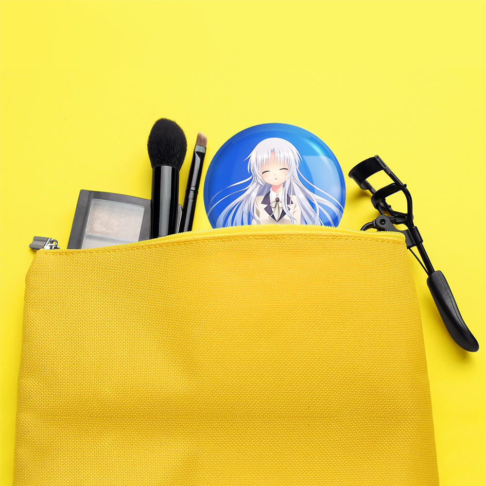 آینه های تاشو کاناده انیمه آنجل بیتس خندالو، از جنس پلاستیک فشرده ABS تولید شده و به رنگ سفید می باشد. یکی از آینه ها ابعاد واقعی را نشان داده و دیگری با قابلیت بزرگنمایی، جزئیات را بهتر نمایش می دهد. ابعاد هر یک از آینه ها، دایره ای به قطر 7.5 سانت می باشد که نه خیلی بزرگ و غیر قابل استفاده در کیف آرایشی ست و نه خیلی کوچک که تصویر خاصی در آن مشاهده نشود. آینه تاشو کاناده انیمه آنجل بیتس سایزی استاندارد و کارآمد دارد و در هر کیفی جا میگیرد. چاپ طرح بوسیله چاپگرهای دیجیتال شش رنگ با شفافیت و کیفیتی مثال زدنی بر روی یک وجه از بدنه ی آینه انجام گرفته و با روکش لمینت حرارتی پوشیده شده که در مقابل آسیب و خط و خش مقاوم بوده و کیفیت بالایی دارد. درب آینه بوسیله قفل بدنه ی آن، باز نمی ماند و کاملا بسته می شود و مناسب قرار گیری در کیف لوازم آرایش و کیف های کوچک دستی نیز هست. آینه های تاشو کاناده انیمه آنجل بیتس خندالو با تنوع طرحی بسیار بالا، سلیقه هر نوع مخاطبی را تامین میکند.