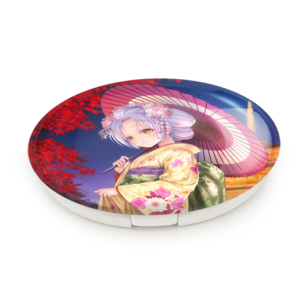 آینه های تاشو کاناده انیمه آنجل بیتس خندالو، از جنس پلاستیک فشرده ABS تولید شده و به رنگ سفید می باشد. یکی از آینه ها ابعاد واقعی را نشان داده و دیگری با قابلیت بزرگنمایی، جزئیات را بهتر نمایش می دهد. ابعاد هر یک از آینه ها، دایره ای به قطر 7.5 سانت می باشد که نه خیلی بزرگ و غیر قابل استفاده در کیف آرایشی ست و نه خیلی کوچک که تصویر خاصی در آن مشاهده نشود. آینه تاشو کاناده انیمه آنجل بیتس سایزی استاندارد و کارآمد دارد و در هر کیفی جا میگیرد. چاپ طرح بوسیله چاپگرهای دیجیتال شش رنگ با شفافیت و کیفیتی مثال زدنی بر روی یک وجه از بدنه ی آینه انجام گرفته و با روکش لمینت حرارتی پوشیده شده که در مقابل آسیب و خط و خش مقاوم بوده و کیفیت بالایی دارد. درب آینه بوسیله قفل بدنه ی آن، باز نمی ماند و کاملا بسته می شود و مناسب قرار گیری در کیف لوازم آرایش و کیف های کوچک دستی نیز هست. آینه های تاشو کاناده انیمه آنجل بیتس خندالو با تنوع طرحی بسیار بالا، سلیقه هر نوع مخاطبی را تامین میکند.
