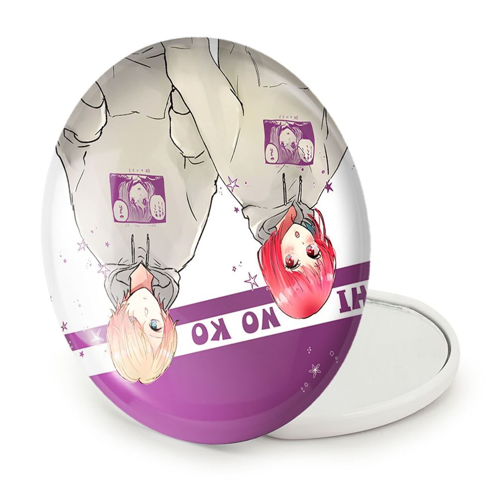 آینه های تاشو کانا آریما و هوشینو انیمه اوشی نو کو ستاره من Oshi No Ko خندالو، از جنس پلاستیک فشرده ABS تولید شده و به رنگ سفید می باشد. یکی از آینه ها ابعاد واقعی را نشان داده و دیگری با قابلیت بزرگنمایی، جزئیات را بهتر نمایش می دهد. ابعاد هر یک از آینه ها، دایره ای به قطر 7.5 سانت می باشد که نه خیلی بزرگ و غیر قابل استفاده در کیف آرایشی ست و نه خیلی کوچک که تصویر خاصی در آن مشاهده نشود. آینه تاشو کانا آریما و هوشینو انیمه اوشی نو کو ستاره من Oshi No Ko سایزی استاندارد و کارآمد دارد و در هر کیفی جا میگیرد. چاپ طرح بوسیله چاپگرهای دیجیتال شش رنگ با شفافیت و کیفیتی مثال زدنی بر روی یک وجه از بدنه ی آینه انجام گرفته و با روکش لمینت حرارتی پوشیده شده که در مقابل آسیب و خط و خش مقاوم بوده و کیفیت بالایی دارد. درب آینه بوسیله قفل بدنه ی آن، باز نمی ماند و کاملا بسته می شود و مناسب قرار گیری در کیف لوازم آرایش و کیف های کوچک دستی نیز هست. آینه های تاشو کانا آریما و هوشینو انیمه اوشی نو کو ستاره من Oshi No Ko خندالو با تنوع طرحی بسیار بالا، سلیقه هر نوع مخاطبی را تامین میکند.