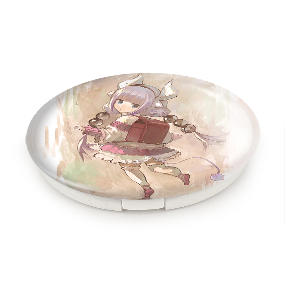 آینه های تاشو کانا انیمه اژدهای خدمتکار کوبایاشی خندالو، از جنس پلاستیک فشرده ABS تولید شده و به رنگ سفید می باشد. یکی از آینه ها ابعاد واقعی را نشان داده و دیگری با قابلیت بزرگنمایی، جزئیات را بهتر نمایش می دهد. ابعاد هر یک از آینه ها، دایره ای به قطر 7.5 سانت می باشد که نه خیلی بزرگ و غیر قابل استفاده در کیف آرایشی ست و نه خیلی کوچک که تصویر خاصی در آن مشاهده نشود. آینه تاشو کانا انیمه اژدهای خدمتکار کوبایاشی سایزی استاندارد و کارآمد دارد و در هر کیفی جا میگیرد. چاپ طرح بوسیله چاپگرهای دیجیتال شش رنگ با شفافیت و کیفیتی مثال زدنی بر روی یک وجه از بدنه ی آینه انجام گرفته و با روکش لمینت حرارتی پوشیده شده که در مقابل آسیب و خط و خش مقاوم بوده و کیفیت بالایی دارد. درب آینه بوسیله قفل بدنه ی آن، باز نمی ماند و کاملا بسته می شود و مناسب قرار گیری در کیف لوازم آرایش و کیف های کوچک دستی نیز هست. آینه های تاشو کانا انیمه اژدهای خدمتکار کوبایاشی خندالو با تنوع طرحی بسیار بالا، سلیقه هر نوع مخاطبی را تامین میکند.