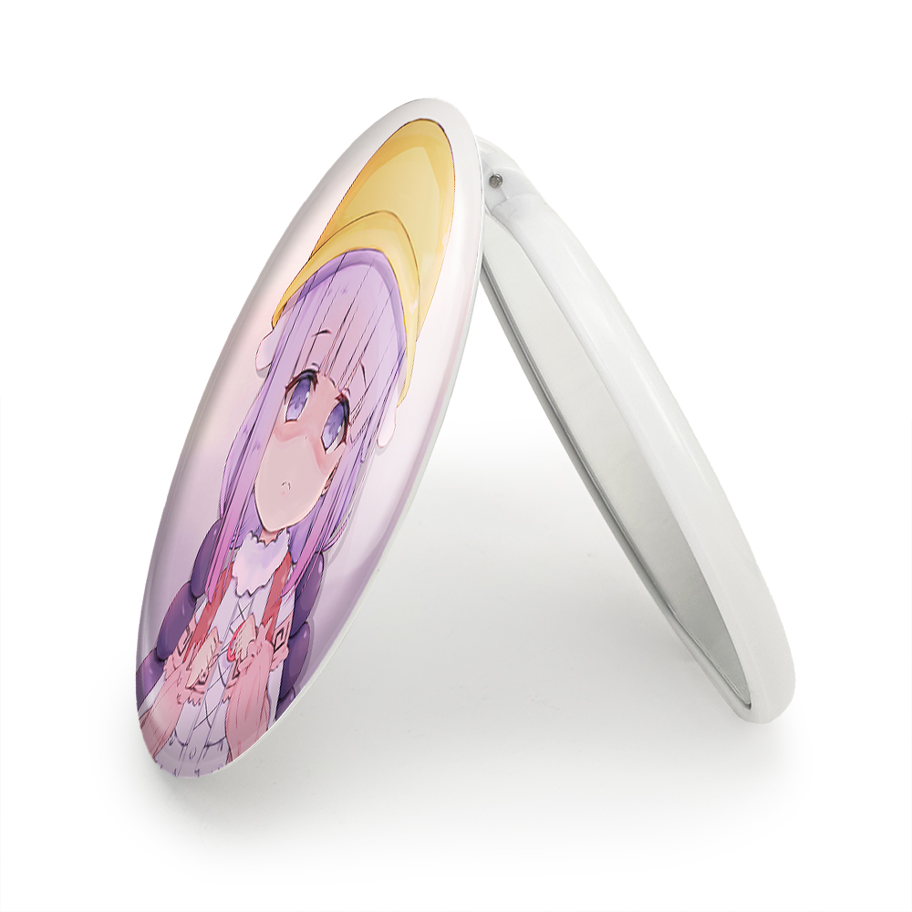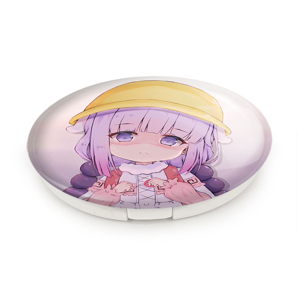 آینه های تاشو کانا انیمه اژدهای خدمتکار کوبایاشی خندالو، از جنس پلاستیک فشرده ABS تولید شده و به رنگ سفید می باشد. یکی از آینه ها ابعاد واقعی را نشان داده و دیگری با قابلیت بزرگنمایی، جزئیات را بهتر نمایش می دهد. ابعاد هر یک از آینه ها، دایره ای به قطر 7.5 سانت می باشد که نه خیلی بزرگ و غیر قابل استفاده در کیف آرایشی ست و نه خیلی کوچک که تصویر خاصی در آن مشاهده نشود. آینه تاشو کانا انیمه اژدهای خدمتکار کوبایاشی سایزی استاندارد و کارآمد دارد و در هر کیفی جا میگیرد. چاپ طرح بوسیله چاپگرهای دیجیتال شش رنگ با شفافیت و کیفیتی مثال زدنی بر روی یک وجه از بدنه ی آینه انجام گرفته و با روکش لمینت حرارتی پوشیده شده که در مقابل آسیب و خط و خش مقاوم بوده و کیفیت بالایی دارد. درب آینه بوسیله قفل بدنه ی آن، باز نمی ماند و کاملا بسته می شود و مناسب قرار گیری در کیف لوازم آرایش و کیف های کوچک دستی نیز هست. آینه های تاشو کانا انیمه اژدهای خدمتکار کوبایاشی خندالو با تنوع طرحی بسیار بالا، سلیقه هر نوع مخاطبی را تامین میکند.