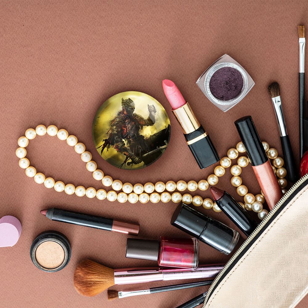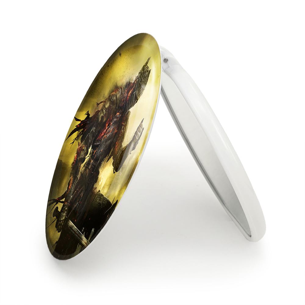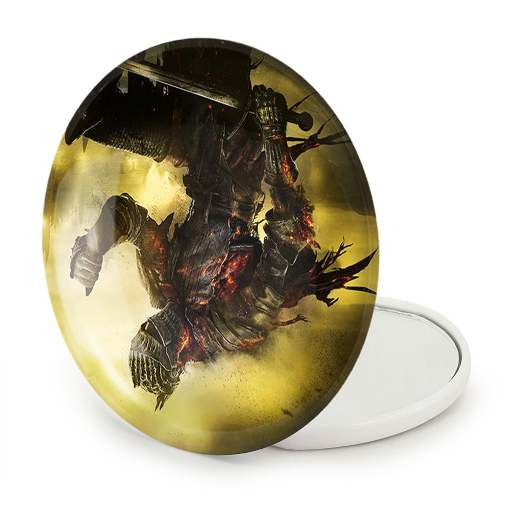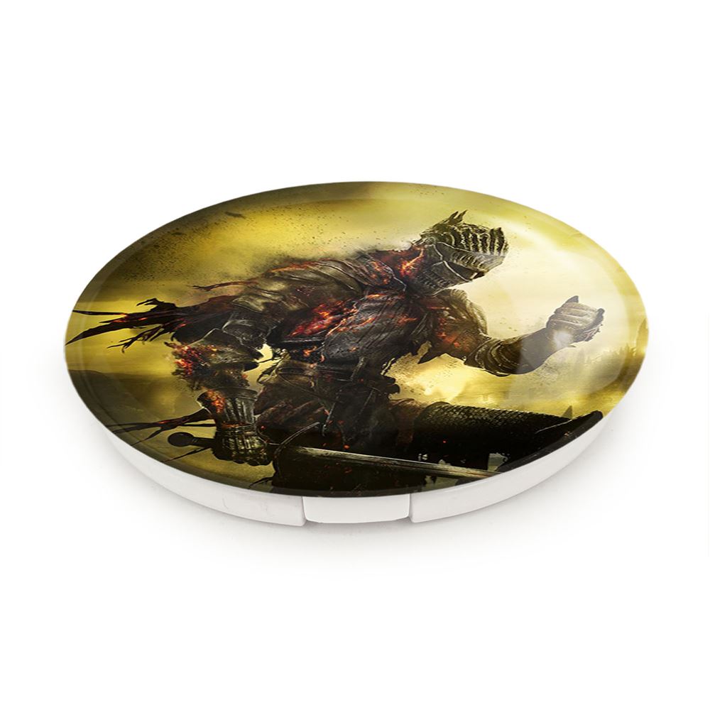 آینه های تاشو کاور رسمی دارک سولز خندالو، از جنس پلاستیک فشرده ABS تولید شده و به رنگ سفید می باشد. یکی از آینه ها ابعاد واقعی را نشان داده و دیگری با قابلیت بزرگنمایی، جزئیات را بهتر نمایش می دهد. ابعاد هر یک از آینه ها، دایره ای به قطر 7.5 سانت می باشد که نه خیلی بزرگ و غیر قابل استفاده در کیف آرایشی ست و نه خیلی کوچک که تصویر خاصی در آن مشاهده نشود. آینه تاشو کاور رسمی دارک سولز سایزی استاندارد و کارآمد دارد و در هر کیفی جا میگیرد. چاپ طرح بوسیله چاپگرهای دیجیتال شش رنگ با شفافیت و کیفیتی مثال زدنی بر روی یک وجه از بدنه ی آینه انجام گرفته و با روکش لمینت حرارتی پوشیده شده که در مقابل آسیب و خط و خش مقاوم بوده و کیفیت بالایی دارد. درب آینه بوسیله قفل بدنه ی آن، باز نمی ماند و کاملا بسته می شود و مناسب قرار گیری در کیف لوازم آرایش و کیف های کوچک دستی نیز هست. آینه های تاشو کاور رسمی دارک سولز خندالو با تنوع طرحی بسیار بالا، سلیقه هر نوع مخاطبی را تامین میکند.