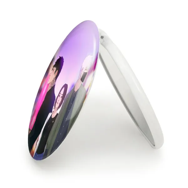 آینه های تاشو کاکاشی و رین و اوبیتو انیمه ناروتو Naruto خندالو، از جنس پلاستیک فشرده ABS تولید شده و به رنگ سفید می باشد. یکی از آینه ها ابعاد واقعی را نشان داده و دیگری با قابلیت بزرگنمایی، جزئیات را بهتر نمایش می دهد. ابعاد هر یک از آینه ها، دایره ای به قطر 7.5 سانت می باشد که نه خیلی بزرگ و غیر قابل استفاده در کیف آرایشی ست و نه خیلی کوچک که تصویر خاصی در آن مشاهده نشود. آینه تاشو کاکاشی و رین و اوبیتو انیمه ناروتو Naruto سایزی استاندارد و کارآمد دارد و در هر کیفی جا میگیرد. چاپ طرح بوسیله چاپگرهای دیجیتال شش رنگ با شفافیت و کیفیتی مثال زدنی بر روی یک وجه از بدنه ی آینه انجام گرفته و با روکش لمینت حرارتی پوشیده شده که در مقابل آسیب و خط و خش مقاوم بوده و کیفیت بالایی دارد. درب آینه بوسیله قفل بدنه ی آن، باز نمی ماند و کاملا بسته می شود و مناسب قرار گیری در کیف لوازم آرایش و کیف های کوچک دستی نیز هست. آینه های تاشو کاکاشی و رین و اوبیتو انیمه ناروتو Naruto خندالو با تنوع طرحی بسیار بالا، سلیقه هر نوع مخاطبی را تامین میکند.