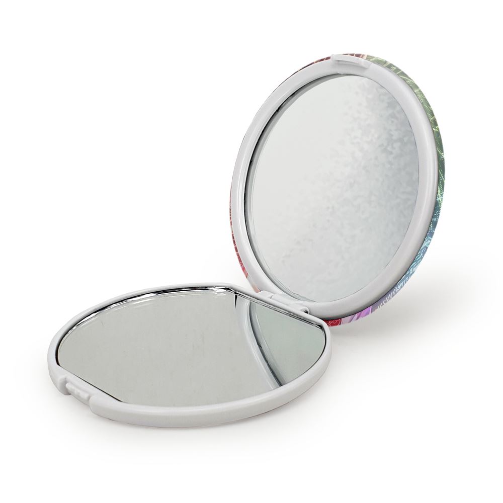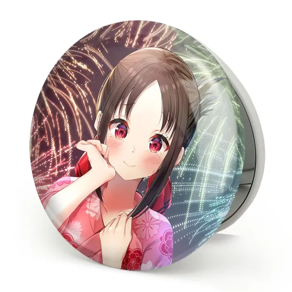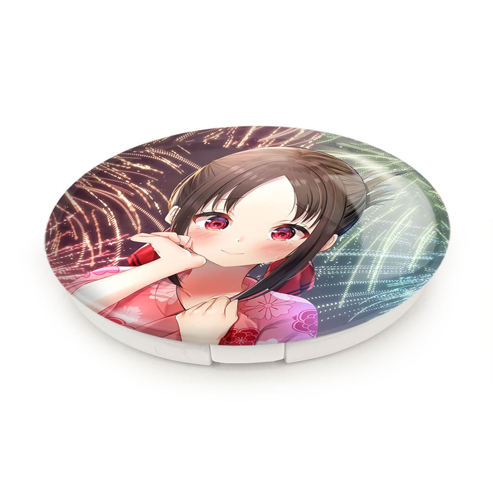 آینه های تاشو کاکویا ساما انیمه کاگویا ساما خندالو، از جنس پلاستیک فشرده ABS تولید شده و به رنگ سفید می باشد. یکی از آینه ها ابعاد واقعی را نشان داده و دیگری با قابلیت بزرگنمایی، جزئیات را بهتر نمایش می دهد. ابعاد هر یک از آینه ها، دایره ای به قطر 7.5 سانت می باشد که نه خیلی بزرگ و غیر قابل استفاده در کیف آرایشی ست و نه خیلی کوچک که تصویر خاصی در آن مشاهده نشود. آینه تاشو کاکویا ساما انیمه کاگویا ساما سایزی استاندارد و کارآمد دارد و در هر کیفی جا میگیرد. چاپ طرح بوسیله چاپگرهای دیجیتال شش رنگ با شفافیت و کیفیتی مثال زدنی بر روی یک وجه از بدنه ی آینه انجام گرفته و با روکش لمینت حرارتی پوشیده شده که در مقابل آسیب و خط و خش مقاوم بوده و کیفیت بالایی دارد. درب آینه بوسیله قفل بدنه ی آن، باز نمی ماند و کاملا بسته می شود و مناسب قرار گیری در کیف لوازم آرایش و کیف های کوچک دستی نیز هست. آینه های تاشو کاکویا ساما انیمه کاگویا ساما خندالو با تنوع طرحی بسیار بالا، سلیقه هر نوع مخاطبی را تامین میکند.