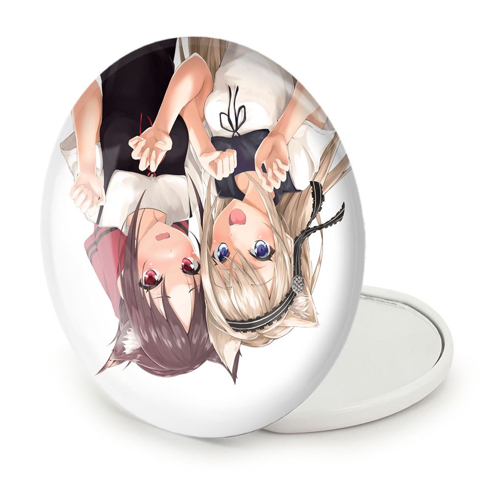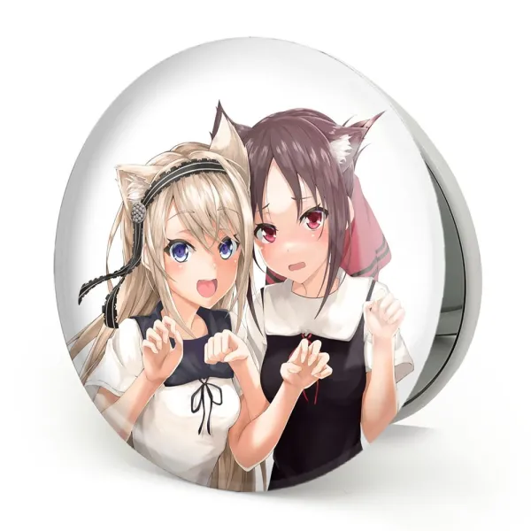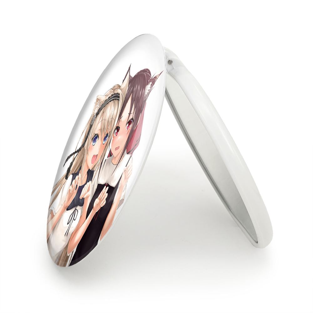 آینه های تاشو کاگویا و شیروگانه انیمه کاگویا ساما خندالو، از جنس پلاستیک فشرده ABS تولید شده و به رنگ سفید می باشد. یکی از آینه ها ابعاد واقعی را نشان داده و دیگری با قابلیت بزرگنمایی، جزئیات را بهتر نمایش می دهد. ابعاد هر یک از آینه ها، دایره ای به قطر 7.5 سانت می باشد که نه خیلی بزرگ و غیر قابل استفاده در کیف آرایشی ست و نه خیلی کوچک که تصویر خاصی در آن مشاهده نشود. آینه تاشو کاگویا و شیروگانه انیمه کاگویا ساما سایزی استاندارد و کارآمد دارد و در هر کیفی جا میگیرد. چاپ طرح بوسیله چاپگرهای دیجیتال شش رنگ با شفافیت و کیفیتی مثال زدنی بر روی یک وجه از بدنه ی آینه انجام گرفته و با روکش لمینت حرارتی پوشیده شده که در مقابل آسیب و خط و خش مقاوم بوده و کیفیت بالایی دارد. درب آینه بوسیله قفل بدنه ی آن، باز نمی ماند و کاملا بسته می شود و مناسب قرار گیری در کیف لوازم آرایش و کیف های کوچک دستی نیز هست. آینه های تاشو کاگویا و شیروگانه انیمه کاگویا ساما خندالو با تنوع طرحی بسیار بالا، سلیقه هر نوع مخاطبی را تامین میکند.