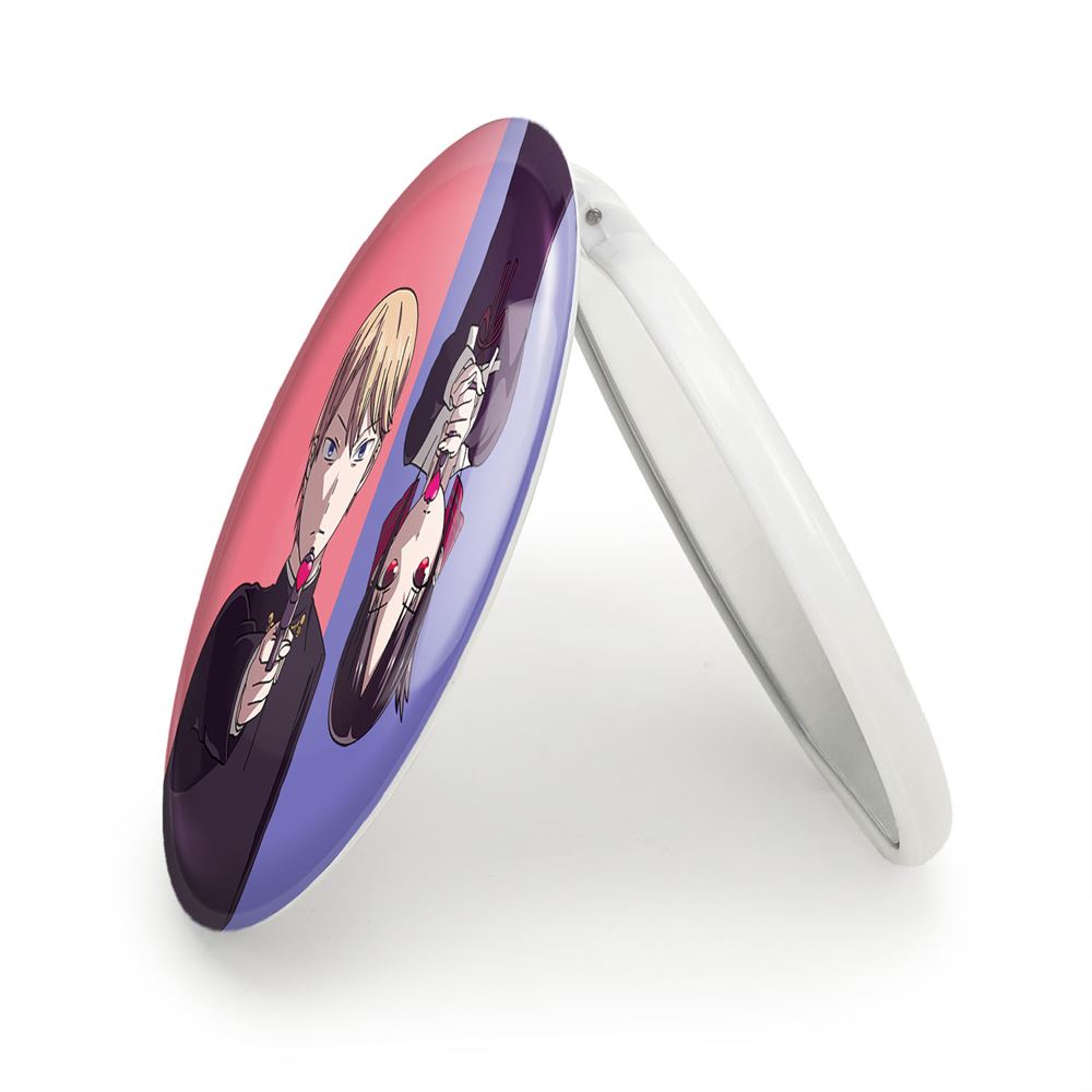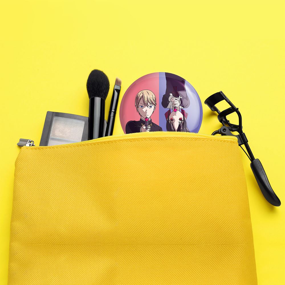 آینه های تاشو کاگویا و میوکی انیمه کاگویا ساما خندالو، از جنس پلاستیک فشرده ABS تولید شده و به رنگ سفید می باشد. یکی از آینه ها ابعاد واقعی را نشان داده و دیگری با قابلیت بزرگنمایی، جزئیات را بهتر نمایش می دهد. ابعاد هر یک از آینه ها، دایره ای به قطر 7.5 سانت می باشد که نه خیلی بزرگ و غیر قابل استفاده در کیف آرایشی ست و نه خیلی کوچک که تصویر خاصی در آن مشاهده نشود. آینه تاشو کاگویا و میوکی انیمه کاگویا ساما سایزی استاندارد و کارآمد دارد و در هر کیفی جا میگیرد. چاپ طرح بوسیله چاپگرهای دیجیتال شش رنگ با شفافیت و کیفیتی مثال زدنی بر روی یک وجه از بدنه ی آینه انجام گرفته و با روکش لمینت حرارتی پوشیده شده که در مقابل آسیب و خط و خش مقاوم بوده و کیفیت بالایی دارد. درب آینه بوسیله قفل بدنه ی آن، باز نمی ماند و کاملا بسته می شود و مناسب قرار گیری در کیف لوازم آرایش و کیف های کوچک دستی نیز هست. آینه های تاشو کاگویا و میوکی انیمه کاگویا ساما خندالو با تنوع طرحی بسیار بالا، سلیقه هر نوع مخاطبی را تامین میکند.