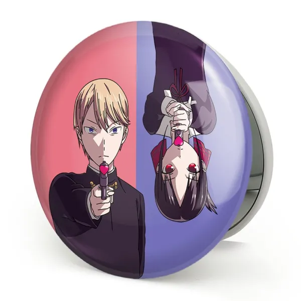 آینه های تاشو کاگویا و میوکی انیمه کاگویا ساما خندالو، از جنس پلاستیک فشرده ABS تولید شده و به رنگ سفید می باشد. یکی از آینه ها ابعاد واقعی را نشان داده و دیگری با قابلیت بزرگنمایی، جزئیات را بهتر نمایش می دهد. ابعاد هر یک از آینه ها، دایره ای به قطر 7.5 سانت می باشد که نه خیلی بزرگ و غیر قابل استفاده در کیف آرایشی ست و نه خیلی کوچک که تصویر خاصی در آن مشاهده نشود. آینه تاشو کاگویا و میوکی انیمه کاگویا ساما سایزی استاندارد و کارآمد دارد و در هر کیفی جا میگیرد. چاپ طرح بوسیله چاپگرهای دیجیتال شش رنگ با شفافیت و کیفیتی مثال زدنی بر روی یک وجه از بدنه ی آینه انجام گرفته و با روکش لمینت حرارتی پوشیده شده که در مقابل آسیب و خط و خش مقاوم بوده و کیفیت بالایی دارد. درب آینه بوسیله قفل بدنه ی آن، باز نمی ماند و کاملا بسته می شود و مناسب قرار گیری در کیف لوازم آرایش و کیف های کوچک دستی نیز هست. آینه های تاشو کاگویا و میوکی انیمه کاگویا ساما خندالو با تنوع طرحی بسیار بالا، سلیقه هر نوع مخاطبی را تامین میکند.
