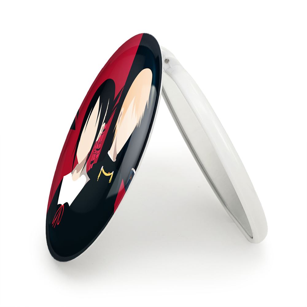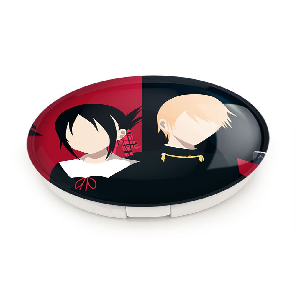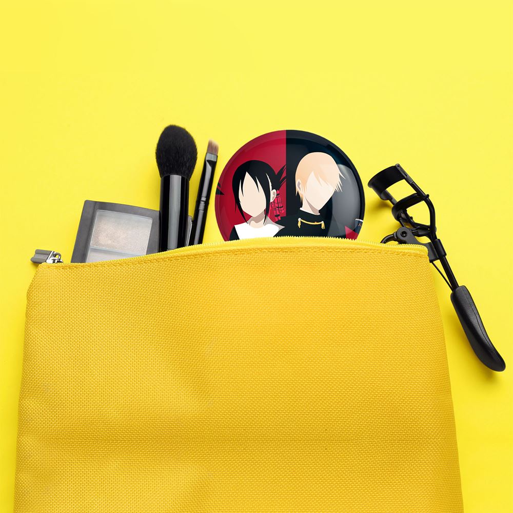 آینه های تاشو کاگویا و میوکی انیمه کاگویا ساما خندالو، از جنس پلاستیک فشرده ABS تولید شده و به رنگ سفید می باشد. یکی از آینه ها ابعاد واقعی را نشان داده و دیگری با قابلیت بزرگنمایی، جزئیات را بهتر نمایش می دهد. ابعاد هر یک از آینه ها، دایره ای به قطر 7.5 سانت می باشد که نه خیلی بزرگ و غیر قابل استفاده در کیف آرایشی ست و نه خیلی کوچک که تصویر خاصی در آن مشاهده نشود. آینه تاشو کاگویا و میوکی انیمه کاگویا ساما سایزی استاندارد و کارآمد دارد و در هر کیفی جا میگیرد. چاپ طرح بوسیله چاپگرهای دیجیتال شش رنگ با شفافیت و کیفیتی مثال زدنی بر روی یک وجه از بدنه ی آینه انجام گرفته و با روکش لمینت حرارتی پوشیده شده که در مقابل آسیب و خط و خش مقاوم بوده و کیفیت بالایی دارد. درب آینه بوسیله قفل بدنه ی آن، باز نمی ماند و کاملا بسته می شود و مناسب قرار گیری در کیف لوازم آرایش و کیف های کوچک دستی نیز هست. آینه های تاشو کاگویا و میوکی انیمه کاگویا ساما خندالو با تنوع طرحی بسیار بالا، سلیقه هر نوع مخاطبی را تامین میکند.