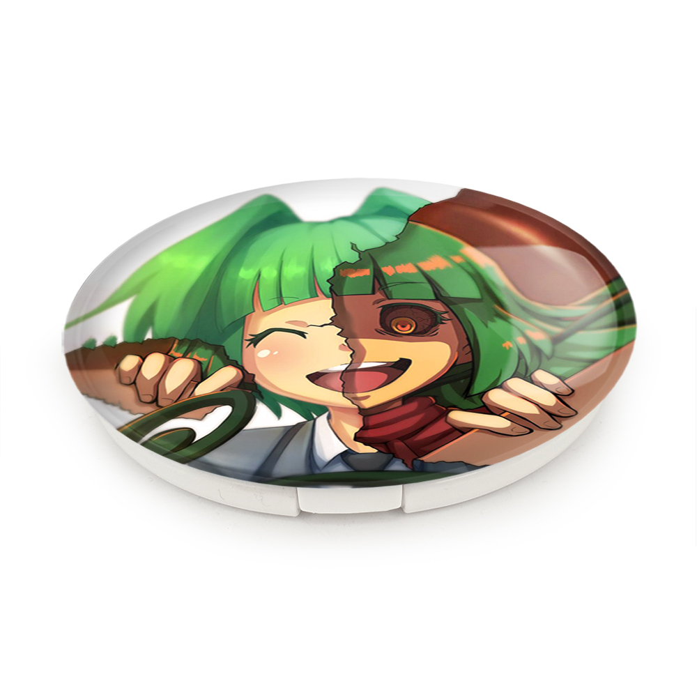 آینه های تاشو کایانو انیمه کلاس آدمکشی خندالو، از جنس پلاستیک فشرده ABS تولید شده و به رنگ سفید می باشد. یکی از آینه ها ابعاد واقعی را نشان داده و دیگری با قابلیت بزرگنمایی، جزئیات را بهتر نمایش می دهد. ابعاد هر یک از آینه ها، دایره ای به قطر 7.5 سانت می باشد که نه خیلی بزرگ و غیر قابل استفاده در کیف آرایشی ست و نه خیلی کوچک که تصویر خاصی در آن مشاهده نشود. آینه تاشو کایانو انیمه کلاس آدمکشی سایزی استاندارد و کارآمد دارد و در هر کیفی جا میگیرد. چاپ طرح بوسیله چاپگرهای دیجیتال شش رنگ با شفافیت و کیفیتی مثال زدنی بر روی یک وجه از بدنه ی آینه انجام گرفته و با روکش لمینت حرارتی پوشیده شده که در مقابل آسیب و خط و خش مقاوم بوده و کیفیت بالایی دارد. درب آینه بوسیله قفل بدنه ی آن، باز نمی ماند و کاملا بسته می شود و مناسب قرار گیری در کیف لوازم آرایش و کیف های کوچک دستی نیز هست. آینه های تاشو کایانو انیمه کلاس آدمکشی خندالو با تنوع طرحی بسیار بالا، سلیقه هر نوع مخاطبی را تامین میکند.