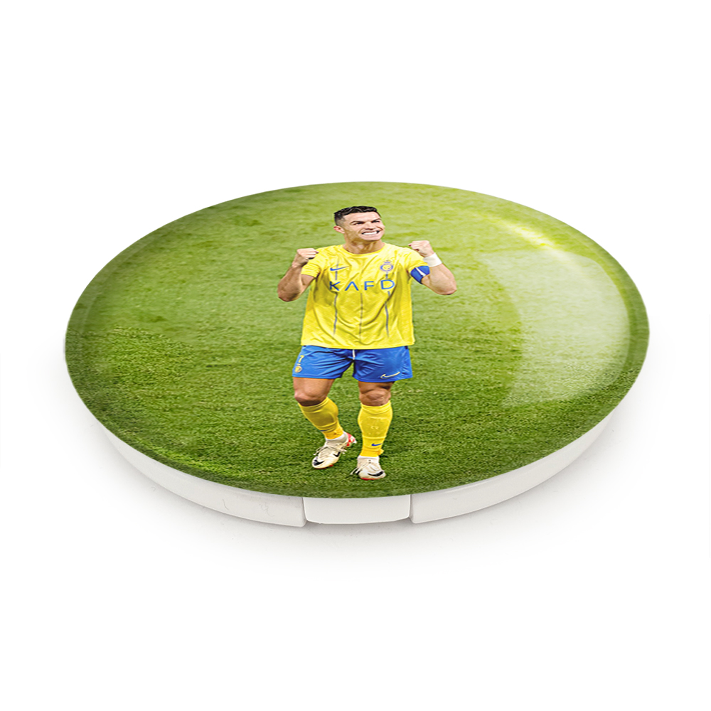 آینه های تاشو کریستیانو رونالدو خندالو، از جنس پلاستیک فشرده ABS تولید شده و به رنگ سفید می باشد. یکی از آینه ها ابعاد واقعی را نشان داده و دیگری با قابلیت بزرگنمایی، جزئیات را بهتر نمایش می دهد.