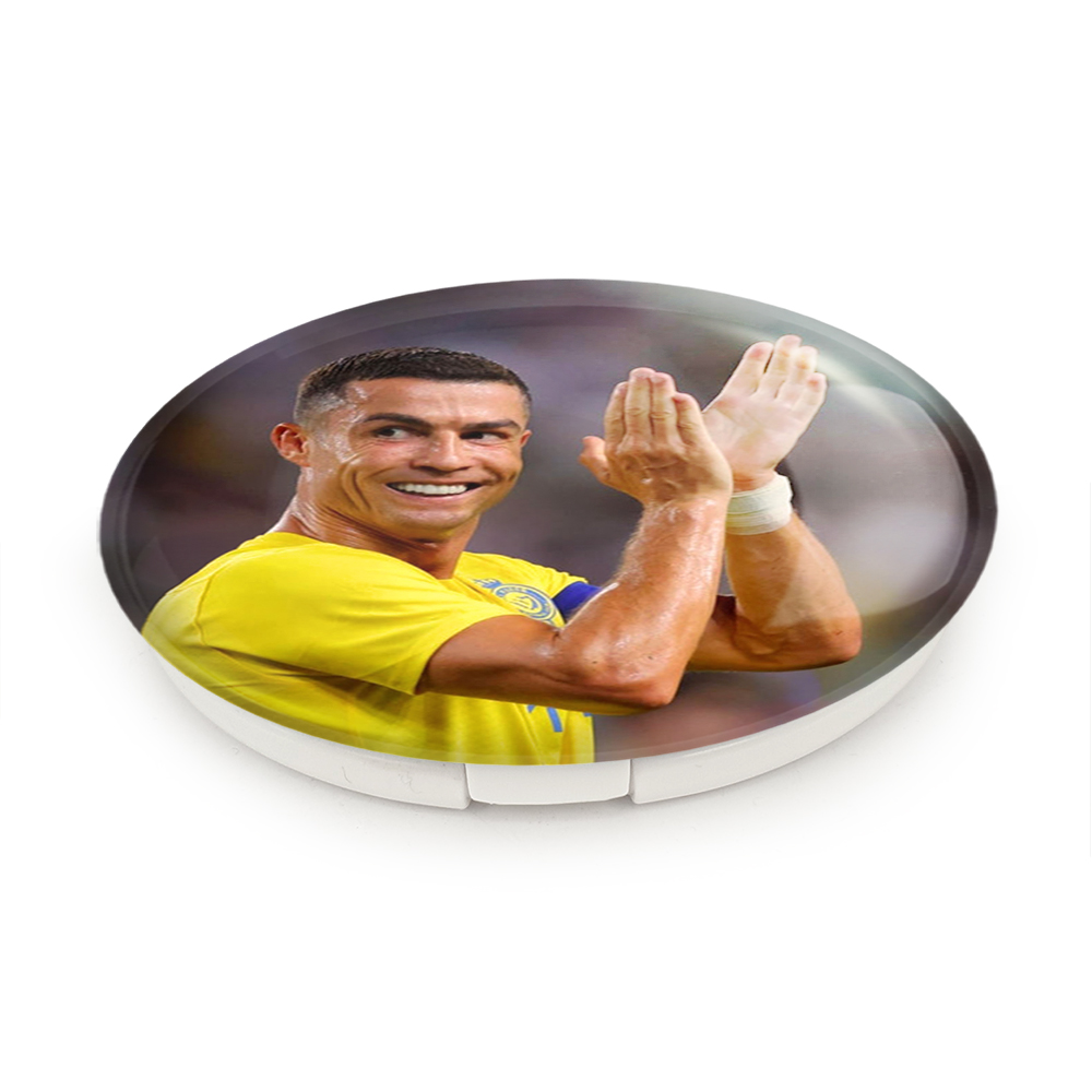 آینه های تاشو کریستیانو رونالدو خندالو، از جنس پلاستیک فشرده ABS تولید شده و به رنگ سفید می باشد. یکی از آینه ها ابعاد واقعی را نشان داده و دیگری با قابلیت بزرگنمایی، جزئیات را بهتر نمایش می دهد.