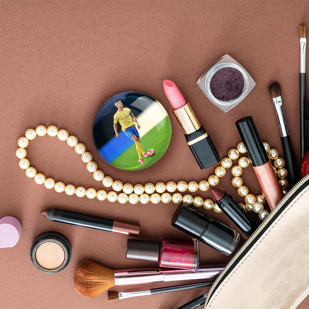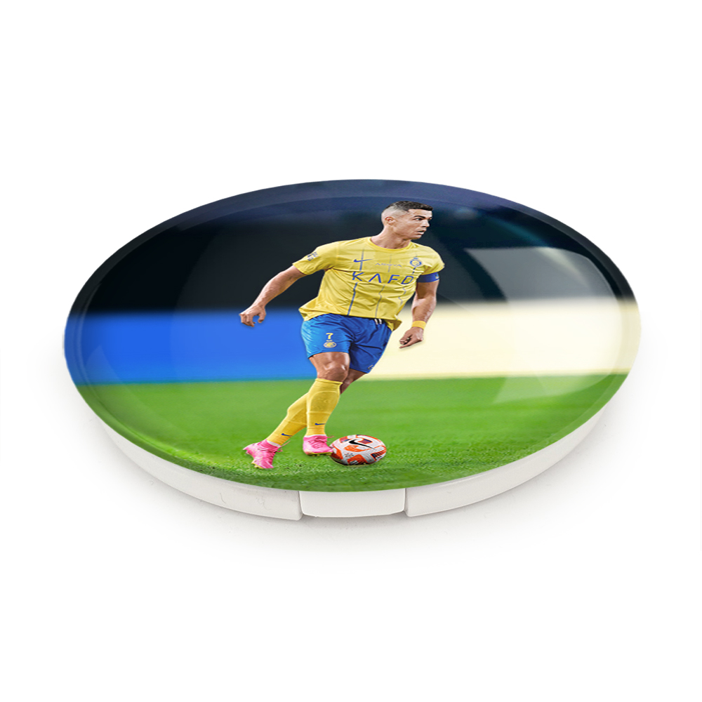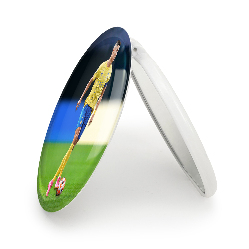 آینه های تاشو کریستیانو رونالدو خندالو، از جنس پلاستیک فشرده ABS تولید شده و به رنگ سفید می باشد. یکی از آینه ها ابعاد واقعی را نشان داده و دیگری با قابلیت بزرگنمایی، جزئیات را بهتر نمایش می دهد.