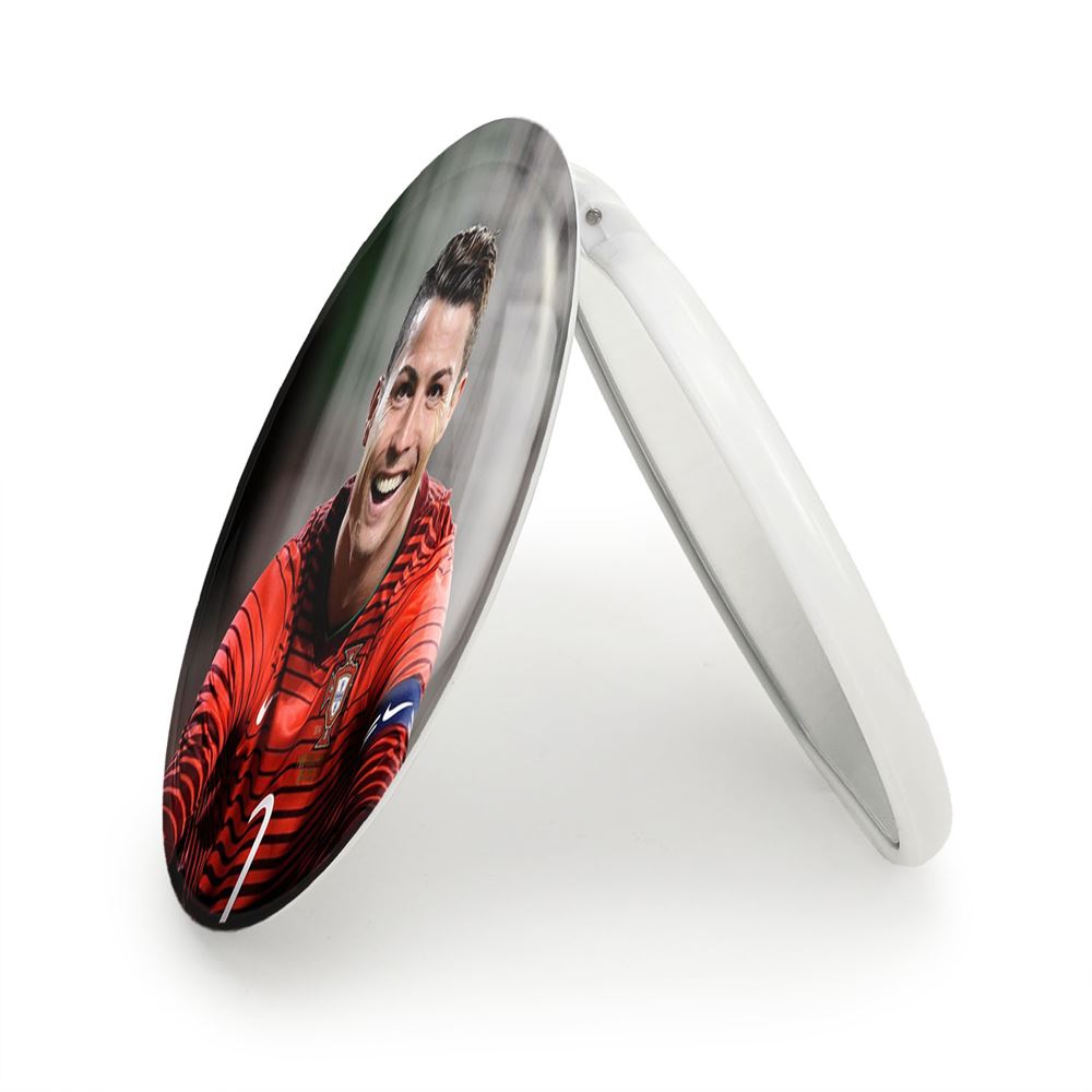 آینه های تاشو کریستیانو رونالدو خندالو، از جنس پلاستیک فشرده ABS تولید شده و به رنگ سفید می باشد. یکی از آینه ها ابعاد واقعی را نشان داده و دیگری با قابلیت بزرگنمایی، جزئیات را بهتر نمایش می دهد.