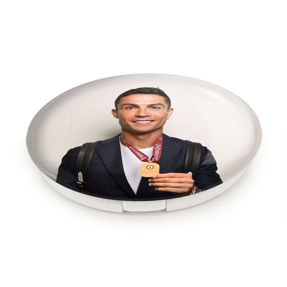 آینه های تاشو کریستیانو رونالدو خندالو، از جنس پلاستیک فشرده ABS تولید شده و به رنگ سفید می باشد. یکی از آینه ها ابعاد واقعی را نشان داده و دیگری با قابلیت بزرگنمایی، جزئیات را بهتر نمایش می دهد. ابعاد هر یک از آینه ها، دایره ای به قطر 7.5 سانت می باشد که نه خیلی بزرگ و غیر قابل استفاده در کیف آرایشی ست و نه خیلی کوچک که تصویر خاصی در آن مشاهده نشود. آینه تاشو کریستیانو رونالدو سایزی استاندارد و کارآمد دارد و در هر کیفی جا میگیرد. چاپ طرح بوسیله چاپگرهای دیجیتال شش رنگ با شفافیت و کیفیتی مثال زدنی بر روی یک وجه از بدنه ی آینه انجام گرفته و با روکش لمینت حرارتی پوشیده شده که در مقابل آسیب و خط و خش مقاوم بوده و کیفیت بالایی دارد. درب آینه بوسیله قفل بدنه ی آن، باز نمی ماند و کاملا بسته می شود و مناسب قرار گیری در کیف لوازم آرایش و کیف های کوچک دستی نیز هست. آینه های تاشو کریستیانو رونالدو خندالو با تنوع طرحی بسیار بالا، سلیقه هر نوع مخاطبی را تامین میکند.