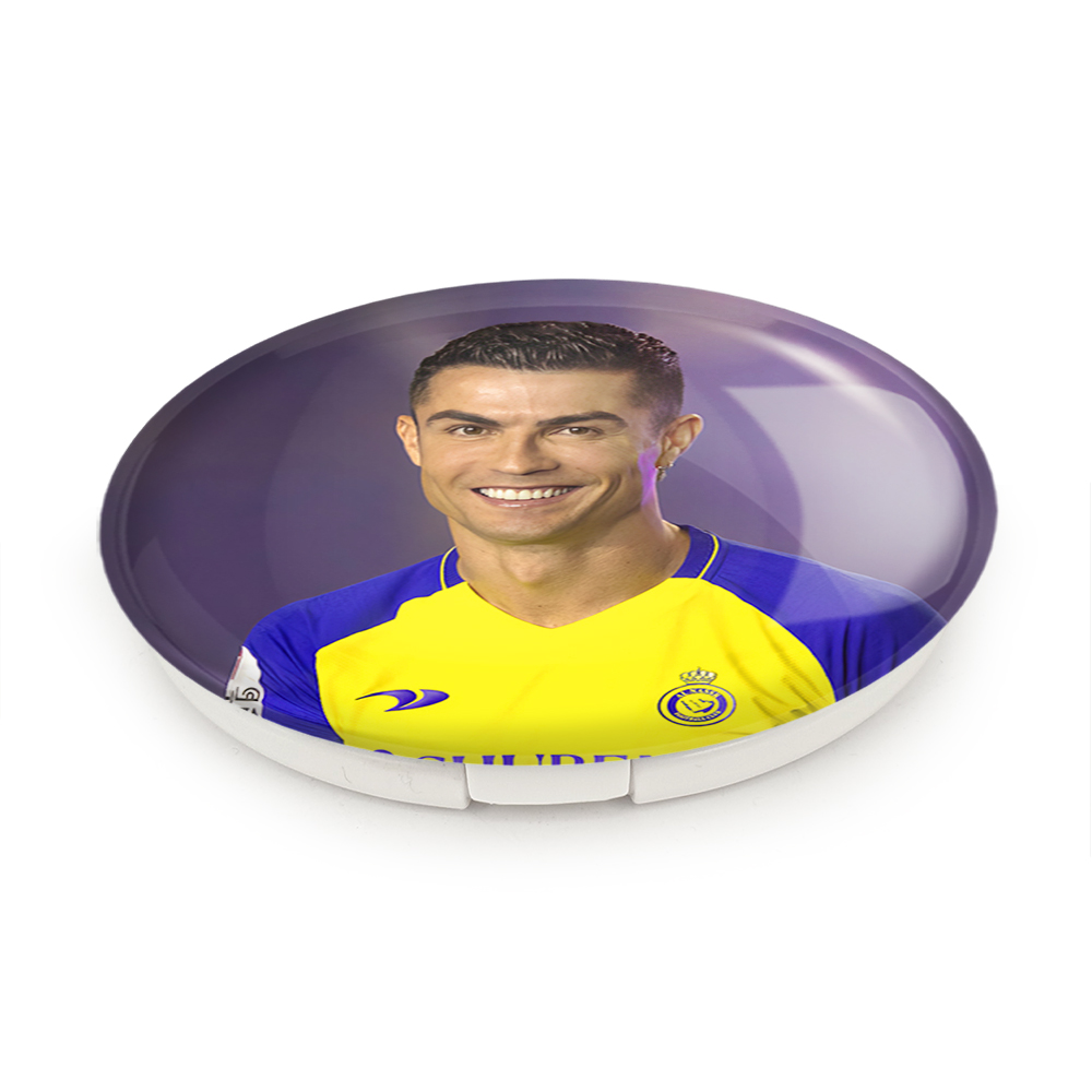آینه های تاشو کریستیانو رونالدو خندالو، از جنس پلاستیک فشرده ABS تولید شده و به رنگ سفید می باشد. یکی از آینه ها ابعاد واقعی را نشان داده و دیگری با قابلیت بزرگنمایی، جزئیات را بهتر نمایش می دهد.
