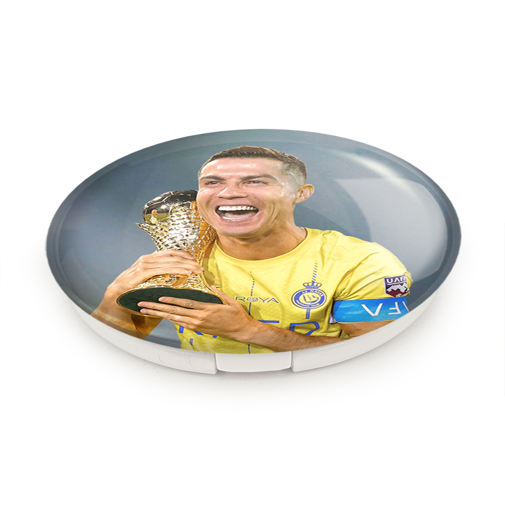 آینه های تاشو کریستیانو رونالدو خندالو، از جنس پلاستیک فشرده ABS تولید شده و به رنگ سفید می باشد. یکی از آینه ها ابعاد واقعی را نشان داده و دیگری با قابلیت بزرگنمایی، جزئیات را بهتر نمایش می دهد.