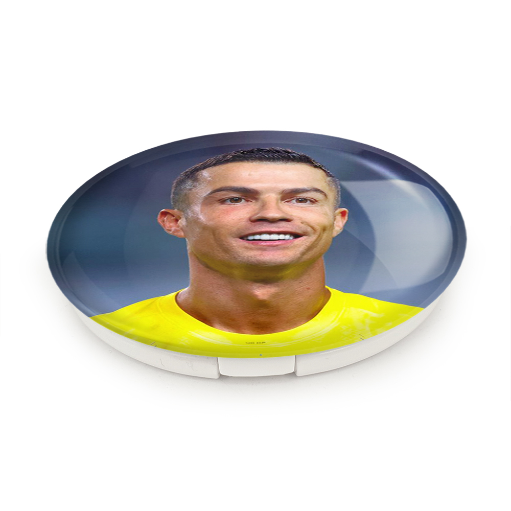 آینه های تاشو کریستیانو رونالدو خندالو، از جنس پلاستیک فشرده ABS تولید شده و به رنگ سفید می باشد. یکی از آینه ها ابعاد واقعی را نشان داده و دیگری با قابلیت بزرگنمایی، جزئیات را بهتر نمایش می دهد.