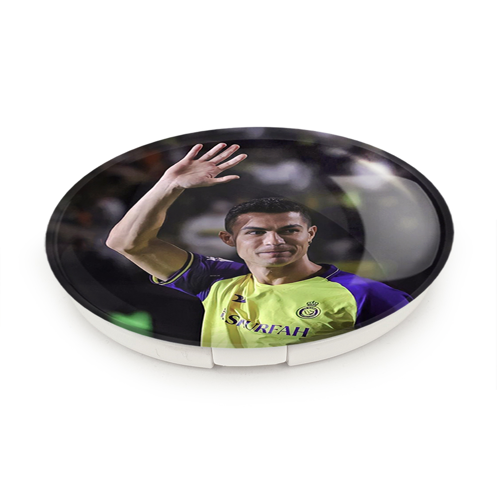 آینه های تاشو کریستیانو رونالدو خندالو، از جنس پلاستیک فشرده ABS تولید شده و به رنگ سفید می باشد. یکی از آینه ها ابعاد واقعی را نشان داده و دیگری با قابلیت بزرگنمایی، جزئیات را بهتر نمایش می دهد.