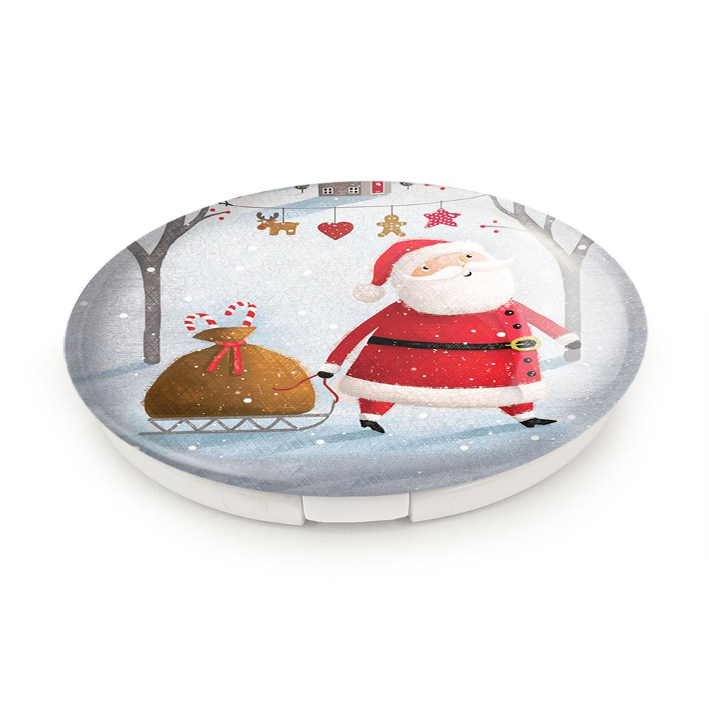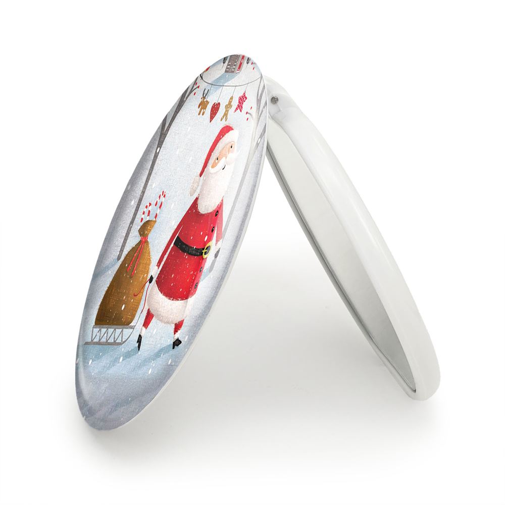 آینه های تاشو کریسمس Christmas خندالو، از جنس پلاستیک فشرده ABS تولید شده و به رنگ سفید می باشد. یکی از آینه ها ابعاد واقعی را نشان داده و دیگری با قابلیت بزرگنمایی، جزئیات را بهتر نمایش می دهد.