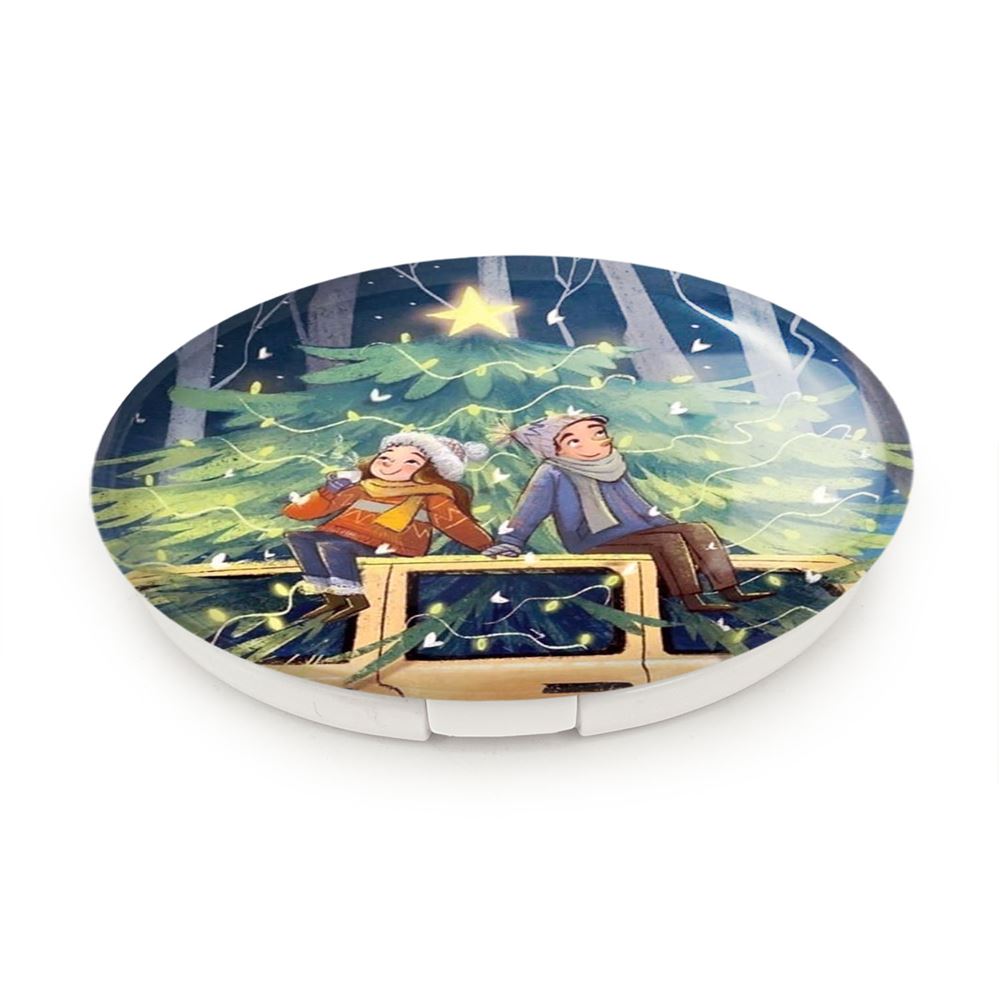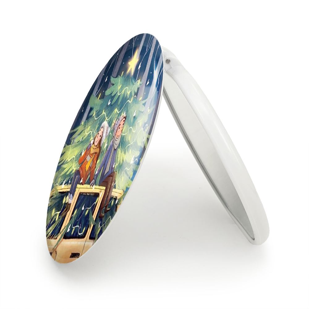 آینه های تاشو کریسمس Christmas خندالو، از جنس پلاستیک فشرده ABS تولید شده و به رنگ سفید می باشد. یکی از آینه ها ابعاد واقعی را نشان داده و دیگری با قابلیت بزرگنمایی، جزئیات را بهتر نمایش می دهد.