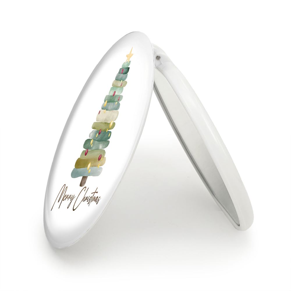 آینه های تاشو کریسمس Christmas خندالو، از جنس پلاستیک فشرده ABS تولید شده و به رنگ سفید می باشد. یکی از آینه ها ابعاد واقعی را نشان داده و دیگری با قابلیت بزرگنمایی، جزئیات را بهتر نمایش می دهد.