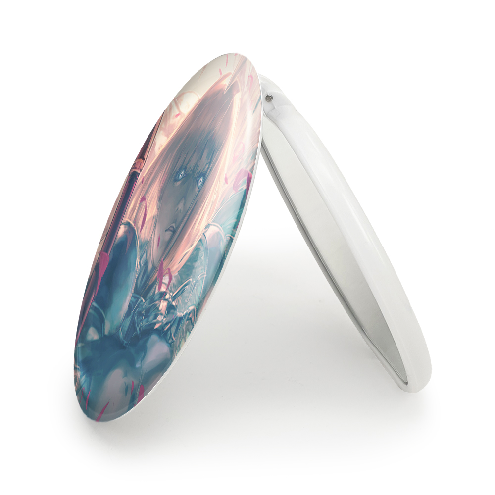 آینه های تاشو کلر انیمه کلیمور خندالو، از جنس پلاستیک فشرده ABS تولید شده و به رنگ سفید می باشد. یکی از آینه ها ابعاد واقعی را نشان داده و دیگری با قابلیت بزرگنمایی، جزئیات را بهتر نمایش می دهد. ابعاد هر یک از آینه ها، دایره ای به قطر 7.5 سانت می باشد که نه خیلی بزرگ و غیر قابل استفاده در کیف آرایشی ست و نه خیلی کوچک که تصویر خاصی در آن مشاهده نشود. آینه تاشو کلر انیمه کلیمور سایزی استاندارد و کارآمد دارد و در هر کیفی جا میگیرد. چاپ طرح بوسیله چاپگرهای دیجیتال شش رنگ با شفافیت و کیفیتی مثال زدنی بر روی یک وجه از بدنه ی آینه انجام گرفته و با روکش لمینت حرارتی پوشیده شده که در مقابل آسیب و خط و خش مقاوم بوده و کیفیت بالایی دارد. درب آینه بوسیله قفل بدنه ی آن، باز نمی ماند و کاملا بسته می شود و مناسب قرار گیری در کیف لوازم آرایش و کیف های کوچک دستی نیز هست. آینه های تاشو کلر انیمه کلیمور خندالو با تنوع طرحی بسیار بالا، سلیقه هر نوع مخاطبی را تامین میکند.