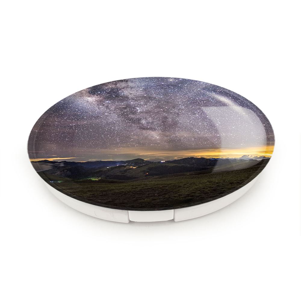 آینه های تاشو کهکشان و سیاره ها خندالو، از جنس پلاستیک فشرده ABS تولید شده و به رنگ سفید می باشد. یکی از آینه ها ابعاد واقعی را نشان داده و دیگری با قابلیت بزرگنمایی، جزئیات را بهتر نمایش می دهد.