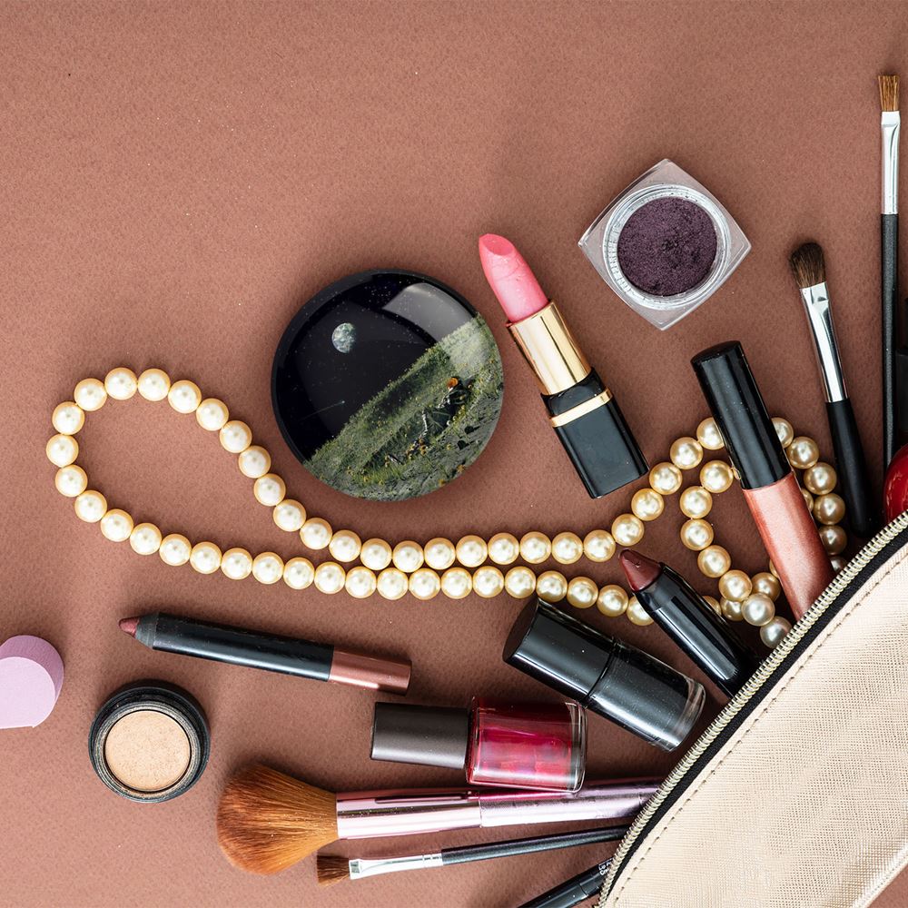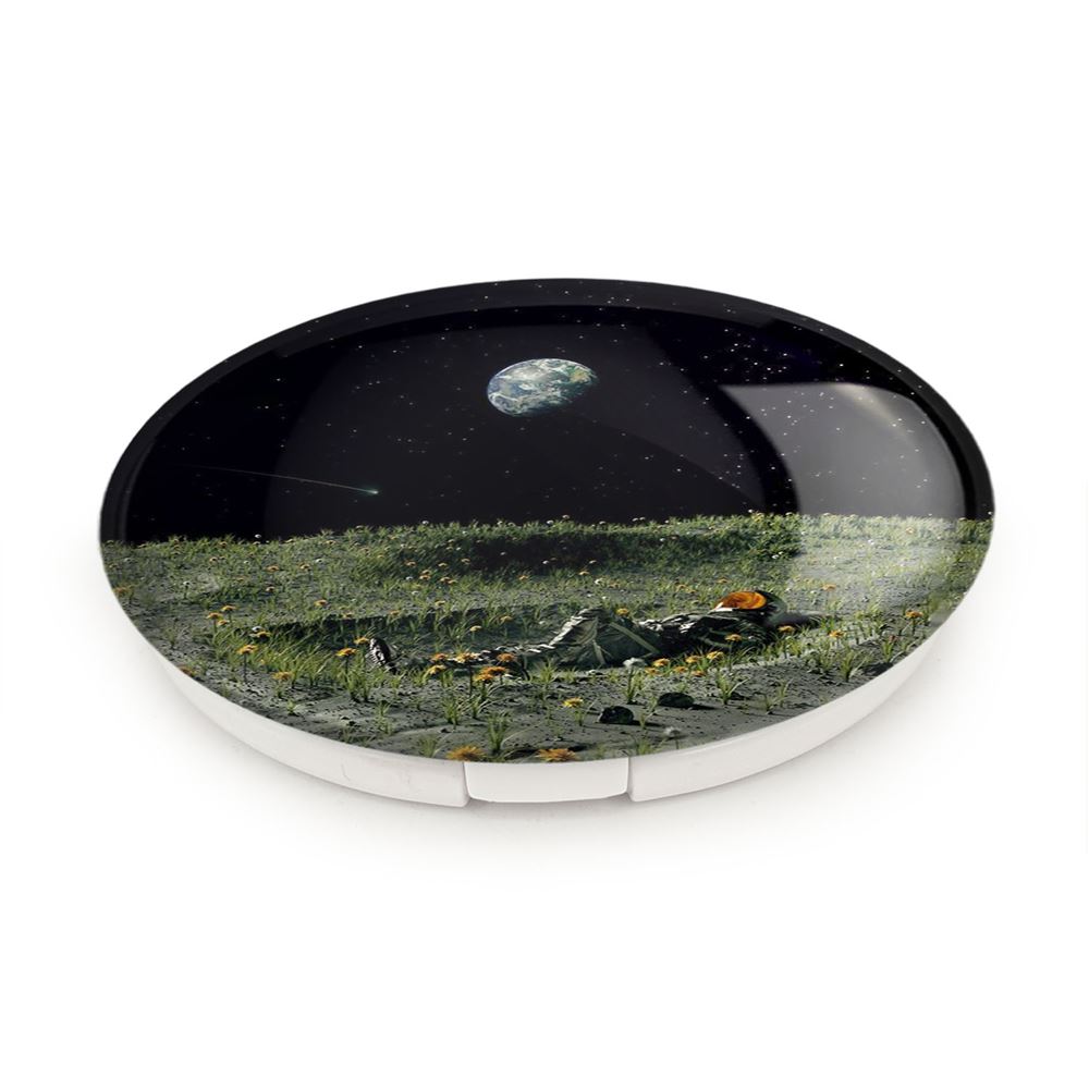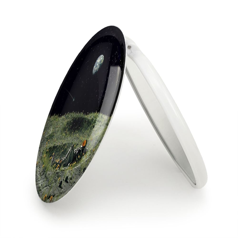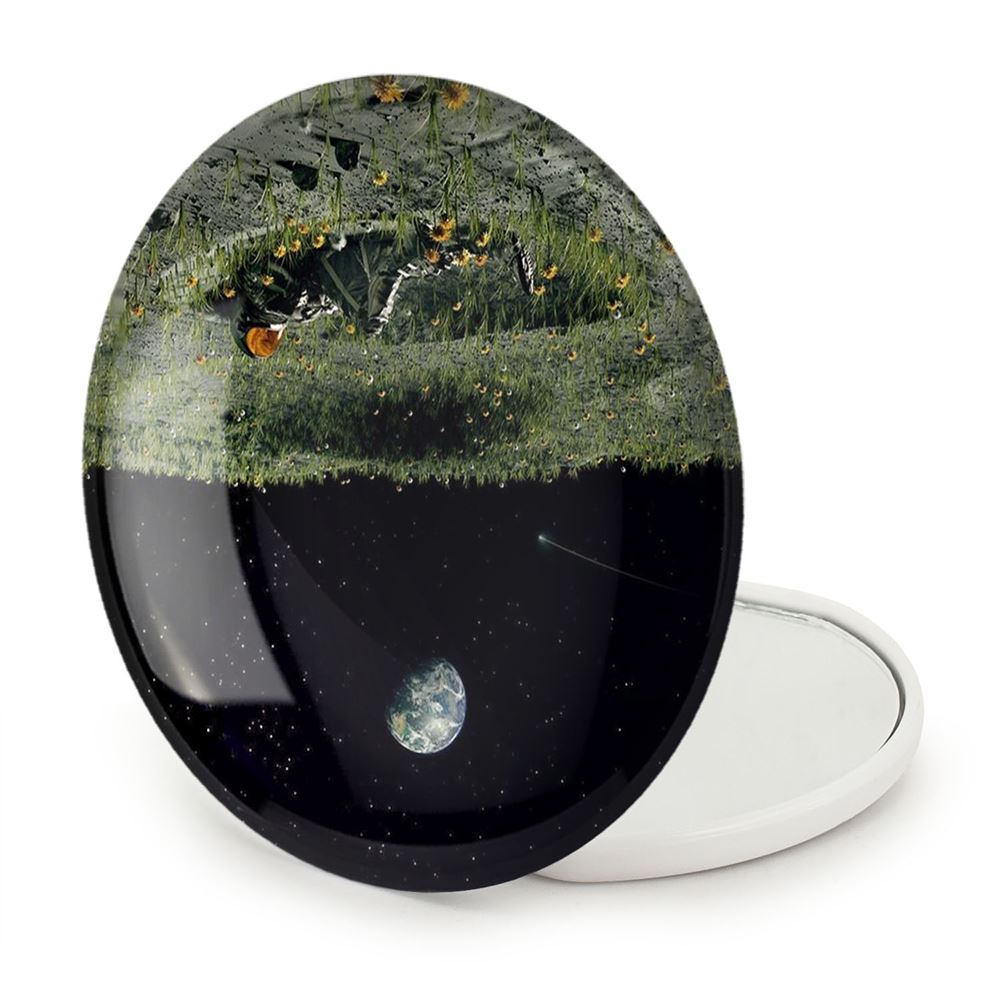 آینه های تاشو کهکشان خندالو، از جنس پلاستیک فشرده ABS تولید شده و به رنگ سفید می باشد. یکی از آینه ها ابعاد واقعی را نشان داده و دیگری با قابلیت بزرگنمایی، جزئیات را بهتر نمایش می دهد. ابعاد هر یک از آینه ها، دایره ای به قطر 7.5 سانت می باشد که نه خیلی بزرگ و غیر قابل استفاده در کیف آرایشی ست و نه خیلی کوچک که تصویر خاصی در آن مشاهده نشود. آینه تاشو کهکشان سایزی استاندارد و کارآمد دارد و در هر کیفی جا میگیرد. چاپ طرح بوسیله چاپگرهای دیجیتال شش رنگ با شفافیت و کیفیتی مثال زدنی بر روی یک وجه از بدنه ی آینه انجام گرفته و با روکش لمینت حرارتی پوشیده شده که در مقابل آسیب و خط و خش مقاوم بوده و کیفیت بالایی دارد. درب آینه بوسیله قفل بدنه ی آن، باز نمی ماند و کاملا بسته می شود و مناسب قرار گیری در کیف لوازم آرایش و کیف های کوچک دستی نیز هست. آینه های تاشو کهکشان خندالو با تنوع طرحی بسیار بالا، سلیقه هر نوع مخاطبی را تامین میکند.
