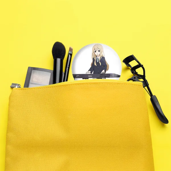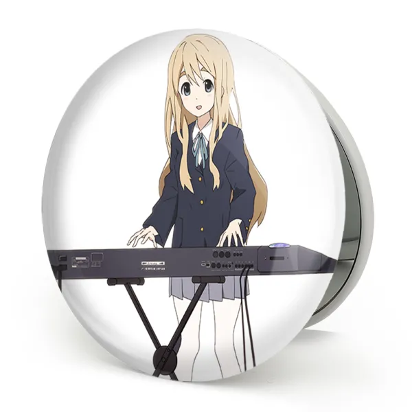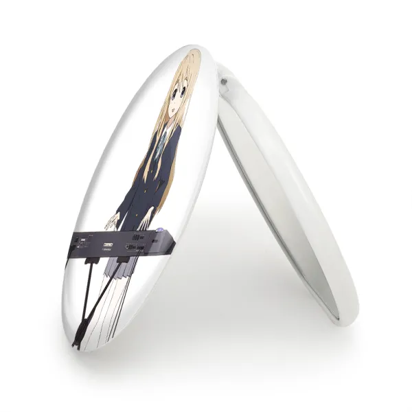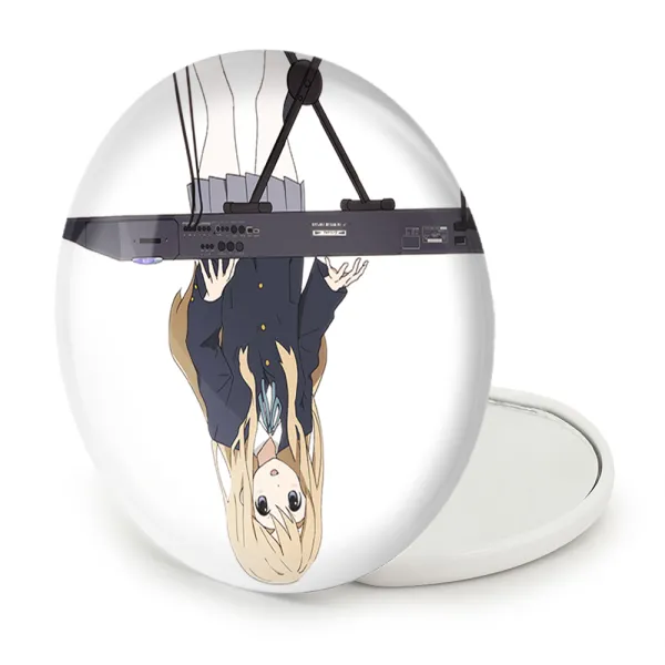 آینه های تاشو کوتوبوکی انیمه كي اون خندالو، از جنس پلاستیک فشرده ABS تولید شده و به رنگ سفید می باشد. یکی از آینه ها ابعاد واقعی را نشان داده و دیگری با قابلیت بزرگنمایی، جزئیات را بهتر نمایش می دهد. ابعاد هر یک از آینه ها، دایره ای به قطر 7.5 سانت می باشد که نه خیلی بزرگ و غیر قابل استفاده در کیف آرایشی ست و نه خیلی کوچک که تصویر خاصی در آن مشاهده نشود. آینه تاشو کوتوبوکی انیمه كي اون سایزی استاندارد و کارآمد دارد و در هر کیفی جا میگیرد. چاپ طرح بوسیله چاپگرهای دیجیتال شش رنگ با شفافیت و کیفیتی مثال زدنی بر روی یک وجه از بدنه ی آینه انجام گرفته و با روکش لمینت حرارتی پوشیده شده که در مقابل آسیب و خط و خش مقاوم بوده و کیفیت بالایی دارد. درب آینه بوسیله قفل بدنه ی آن، باز نمی ماند و کاملا بسته می شود و مناسب قرار گیری در کیف لوازم آرایش و کیف های کوچک دستی نیز هست. آینه های تاشو کوتوبوکی انیمه كي اون خندالو با تنوع طرحی بسیار بالا، سلیقه هر نوع مخاطبی را تامین میکند.