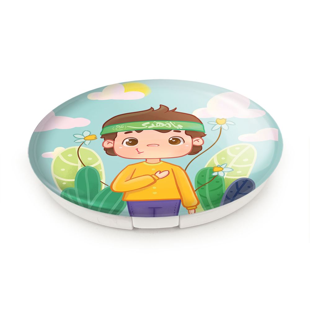 آینه های تاشو کودکانه محرم و اربعین امام حسین خندالو، از جنس پلاستیک فشرده ABS تولید شده و به رنگ سفید می باشد. یکی از آینه ها ابعاد واقعی را نشان داده و دیگری با قابلیت بزرگنمایی، جزئیات را بهتر نمایش می دهد. ابعاد هر یک از آینه ها، دایره ای به قطر 7.5 سانت می باشد که نه خیلی بزرگ و غیر قابل استفاده در کیف آرایشی ست و نه خیلی کوچک که تصویر خاصی در آن مشاهده نشود. آینه تاشو کودکانه محرم و اربعین امام حسین سایزی استاندارد و کارآمد دارد و در هر کیفی جا میگیرد. چاپ طرح بوسیله چاپگرهای دیجیتال شش رنگ با شفافیت و کیفیتی مثال زدنی بر روی یک وجه از بدنه ی آینه انجام گرفته و با روکش لمینت حرارتی پوشیده شده که در مقابل آسیب و خط و خش مقاوم بوده و کیفیت بالایی دارد. درب آینه بوسیله قفل بدنه ی آن، باز نمی ماند و کاملا بسته می شود و مناسب قرار گیری در کیف لوازم آرایش و کیف های کوچک دستی نیز هست. آینه های تاشو کودکانه محرم و اربعین امام حسین خندالو با تنوع طرحی بسیار بالا، سلیقه هر نوع مخاطبی را تامین میکند.