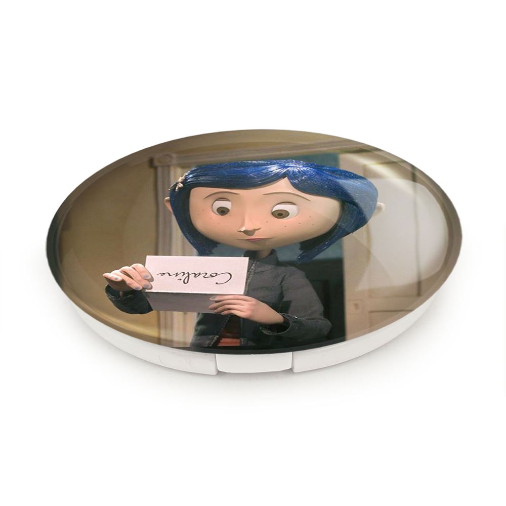 آینه های تاشو کورالاین Coraline خندالو، از جنس پلاستیک فشرده ABS تولید شده و به رنگ سفید می باشد. یکی از آینه ها ابعاد واقعی را نشان داده و دیگری با قابلیت بزرگنمایی، جزئیات را بهتر نمایش می دهد. ابعاد هر یک از آینه ها، دایره ای به قطر 7.5 سانت می باشد که نه خیلی بزرگ و غیر قابل استفاده در کیف آرایشی ست و نه خیلی کوچک که تصویر خاصی در آن مشاهده نشود. آینه تاشو کورالاین Coraline سایزی استاندارد و کارآمد دارد و در هر کیفی جا میگیرد. چاپ طرح بوسیله چاپگرهای دیجیتال شش رنگ با شفافیت و کیفیتی مثال زدنی بر روی یک وجه از بدنه ی آینه انجام گرفته و با روکش لمینت حرارتی پوشیده شده که در مقابل آسیب و خط و خش مقاوم بوده و کیفیت بالایی دارد. درب آینه بوسیله قفل بدنه ی آن، باز نمی ماند و کاملا بسته می شود و مناسب قرار گیری در کیف لوازم آرایش و کیف های کوچک دستی نیز هست. آینه های تاشو کورالاین Coraline خندالو با تنوع طرحی بسیار بالا، سلیقه هر نوع مخاطبی را تامین میکند.