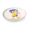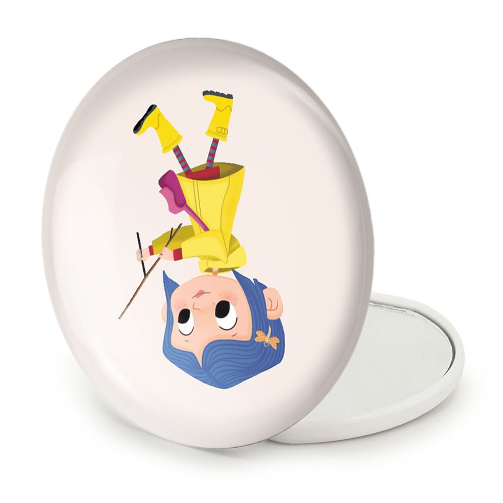 آینه های تاشو کورالاین Coraline خندالو، از جنس پلاستیک فشرده ABS تولید شده و به رنگ سفید می باشد. یکی از آینه ها ابعاد واقعی را نشان داده و دیگری با قابلیت بزرگنمایی، جزئیات را بهتر نمایش می دهد. ابعاد هر یک از آینه ها، دایره ای به قطر 7.5 سانت می باشد که نه خیلی بزرگ و غیر قابل استفاده در کیف آرایشی ست و نه خیلی کوچک که تصویر خاصی در آن مشاهده نشود. آینه تاشو کورالاین Coraline سایزی استاندارد و کارآمد دارد و در هر کیفی جا میگیرد. چاپ طرح بوسیله چاپگرهای دیجیتال شش رنگ با شفافیت و کیفیتی مثال زدنی بر روی یک وجه از بدنه ی آینه انجام گرفته و با روکش لمینت حرارتی پوشیده شده که در مقابل آسیب و خط و خش مقاوم بوده و کیفیت بالایی دارد. درب آینه بوسیله قفل بدنه ی آن، باز نمی ماند و کاملا بسته می شود و مناسب قرار گیری در کیف لوازم آرایش و کیف های کوچک دستی نیز هست. آینه های تاشو کورالاین Coraline خندالو با تنوع طرحی بسیار بالا، سلیقه هر نوع مخاطبی را تامین میکند.