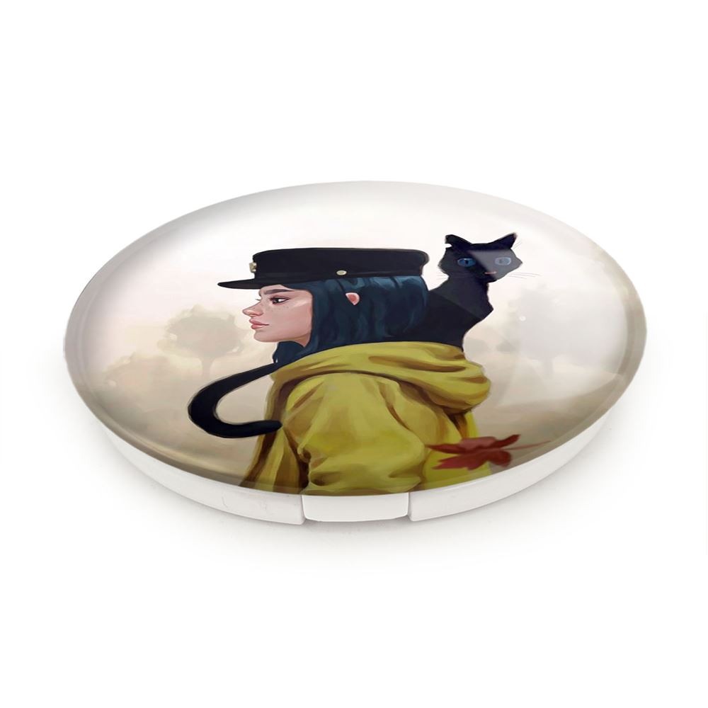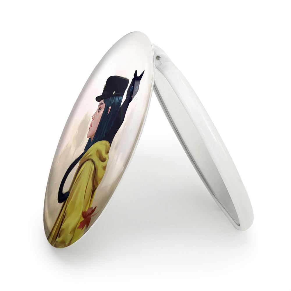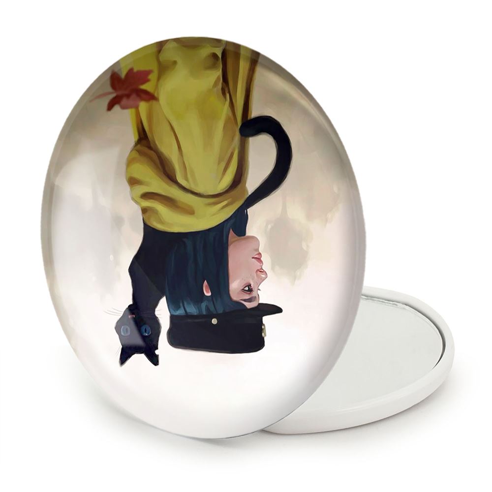 آینه های تاشو کورالاین Coraline خندالو، از جنس پلاستیک فشرده ABS تولید شده و به رنگ سفید می باشد. یکی از آینه ها ابعاد واقعی را نشان داده و دیگری با قابلیت بزرگنمایی، جزئیات را بهتر نمایش می دهد. ابعاد هر یک از آینه ها، دایره ای به قطر 7.5 سانت می باشد که نه خیلی بزرگ و غیر قابل استفاده در کیف آرایشی ست و نه خیلی کوچک که تصویر خاصی در آن مشاهده نشود. آینه تاشو کورالاین Coraline سایزی استاندارد و کارآمد دارد و در هر کیفی جا میگیرد. چاپ طرح بوسیله چاپگرهای دیجیتال شش رنگ با شفافیت و کیفیتی مثال زدنی بر روی یک وجه از بدنه ی آینه انجام گرفته و با روکش لمینت حرارتی پوشیده شده که در مقابل آسیب و خط و خش مقاوم بوده و کیفیت بالایی دارد. درب آینه بوسیله قفل بدنه ی آن، باز نمی ماند و کاملا بسته می شود و مناسب قرار گیری در کیف لوازم آرایش و کیف های کوچک دستی نیز هست. آینه های تاشو کورالاین Coraline خندالو با تنوع طرحی بسیار بالا، سلیقه هر نوع مخاطبی را تامین میکند.