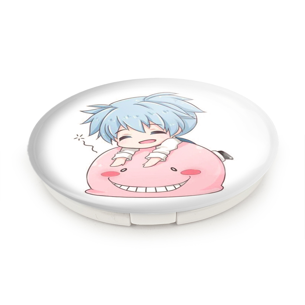 آینه های تاشو کورو سنسی و ناگیسا انیمه کلاس آدمکشی خندالو، از جنس پلاستیک فشرده ABS تولید شده و به رنگ سفید می باشد. یکی از آینه ها ابعاد واقعی را نشان داده و دیگری با قابلیت بزرگنمایی، جزئیات را بهتر نمایش می دهد. ابعاد هر یک از آینه ها، دایره ای به قطر 7.5 سانت می باشد که نه خیلی بزرگ و غیر قابل استفاده در کیف آرایشی ست و نه خیلی کوچک که تصویر خاصی در آن مشاهده نشود. آینه تاشو کورو سنسی و ناگیسا انیمه کلاس آدمکشی سایزی استاندارد و کارآمد دارد و در هر کیفی جا میگیرد. چاپ طرح بوسیله چاپگرهای دیجیتال شش رنگ با شفافیت و کیفیتی مثال زدنی بر روی یک وجه از بدنه ی آینه انجام گرفته و با روکش لمینت حرارتی پوشیده شده که در مقابل آسیب و خط و خش مقاوم بوده و کیفیت بالایی دارد. درب آینه بوسیله قفل بدنه ی آن، باز نمی ماند و کاملا بسته می شود و مناسب قرار گیری در کیف لوازم آرایش و کیف های کوچک دستی نیز هست. آینه های تاشو کورو سنسی و ناگیسا انیمه کلاس آدمکشی خندالو با تنوع طرحی بسیار بالا، سلیقه هر نوع مخاطبی را تامین میکند.