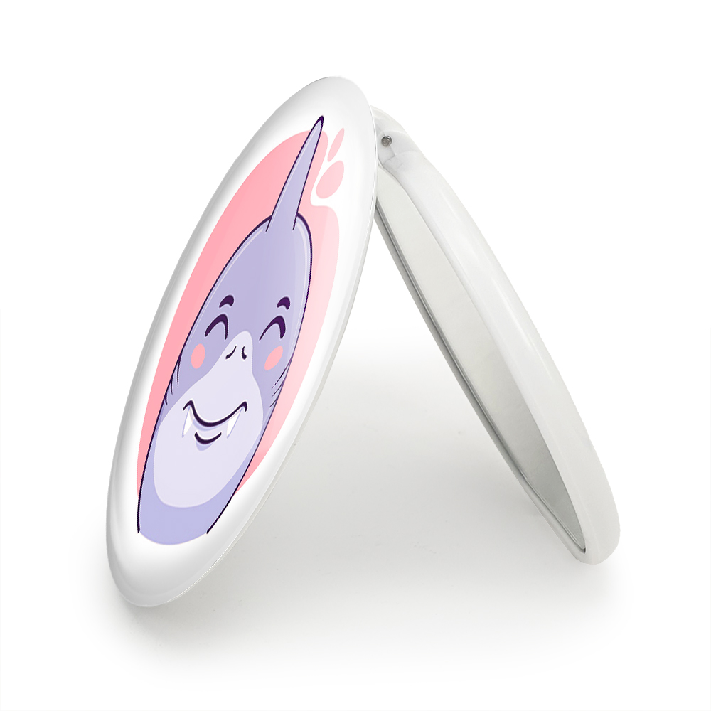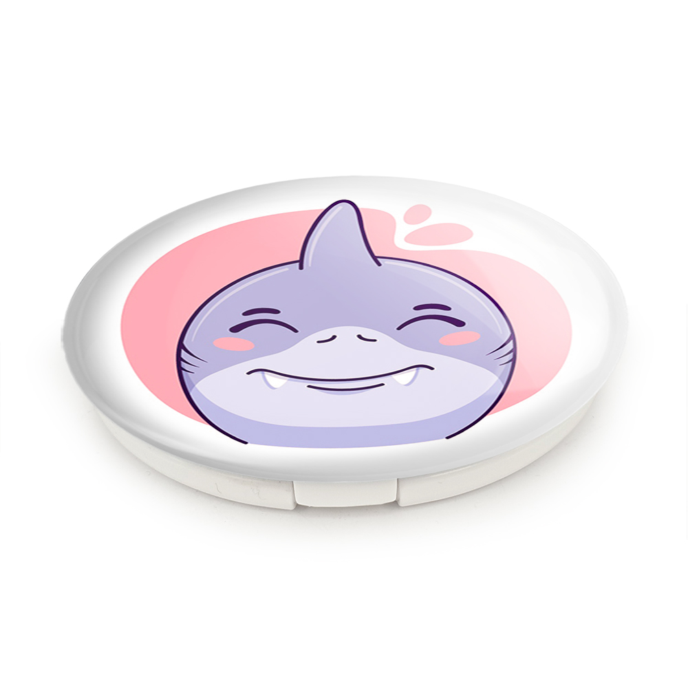 آینه های تاشو کوسه حیوانات بامزه خندالو، از جنس پلاستیک فشرده ABS تولید شده و به رنگ سفید می باشد. یکی از آینه ها ابعاد واقعی را نشان داده و دیگری با قابلیت بزرگنمایی، جزئیات را بهتر نمایش می دهد. ابعاد هر یک از آینه ها، دایره ای به قطر 7.5 سانت می باشد که نه خیلی بزرگ و غیر قابل استفاده در کیف آرایشی ست و نه خیلی کوچک که تصویر خاصی در آن مشاهده نشود. آینه تاشو کوسه حیوانات بامزه سایزی استاندارد و کارآمد دارد و در هر کیفی جا میگیرد. چاپ طرح بوسیله چاپگرهای دیجیتال شش رنگ با شفافیت و کیفیتی مثال زدنی بر روی یک وجه از بدنه ی آینه انجام گرفته و با روکش لمینت حرارتی پوشیده شده که در مقابل آسیب و خط و خش مقاوم بوده و کیفیت بالایی دارد. درب آینه بوسیله قفل بدنه ی آن، باز نمی ماند و کاملا بسته می شود و مناسب قرار گیری در کیف لوازم آرایش و کیف های کوچک دستی نیز هست. آینه های تاشو کوسه حیوانات بامزه خندالو با تنوع طرحی بسیار بالا، سلیقه هر نوع مخاطبی را تامین میکند.