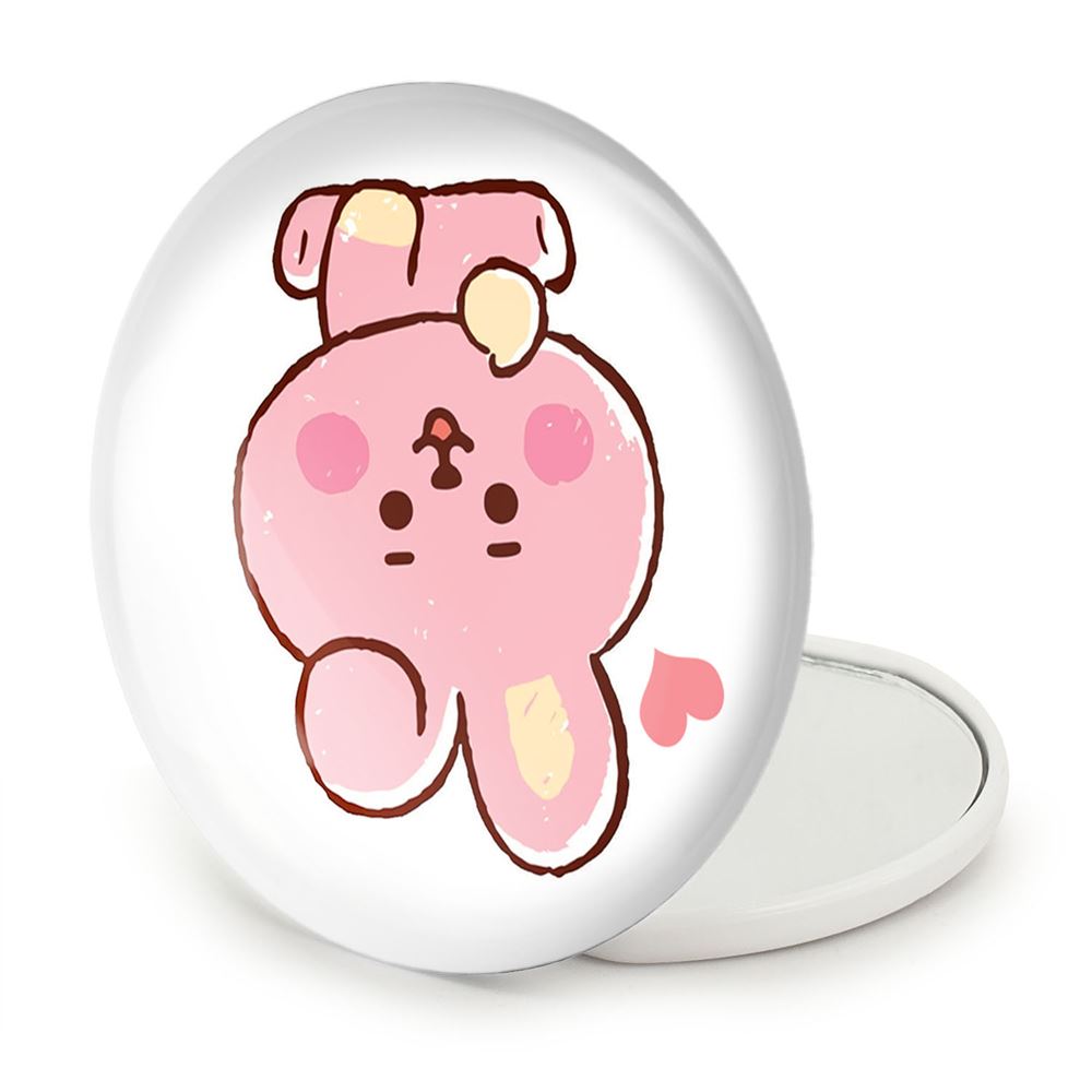 آینه های تاشو کوکی BT21 Cooky خندالو، از جنس پلاستیک فشرده ABS تولید شده و به رنگ سفید می باشد. یکی از آینه ها ابعاد واقعی را نشان داده و دیگری با قابلیت بزرگنمایی، جزئیات را بهتر نمایش می دهد.