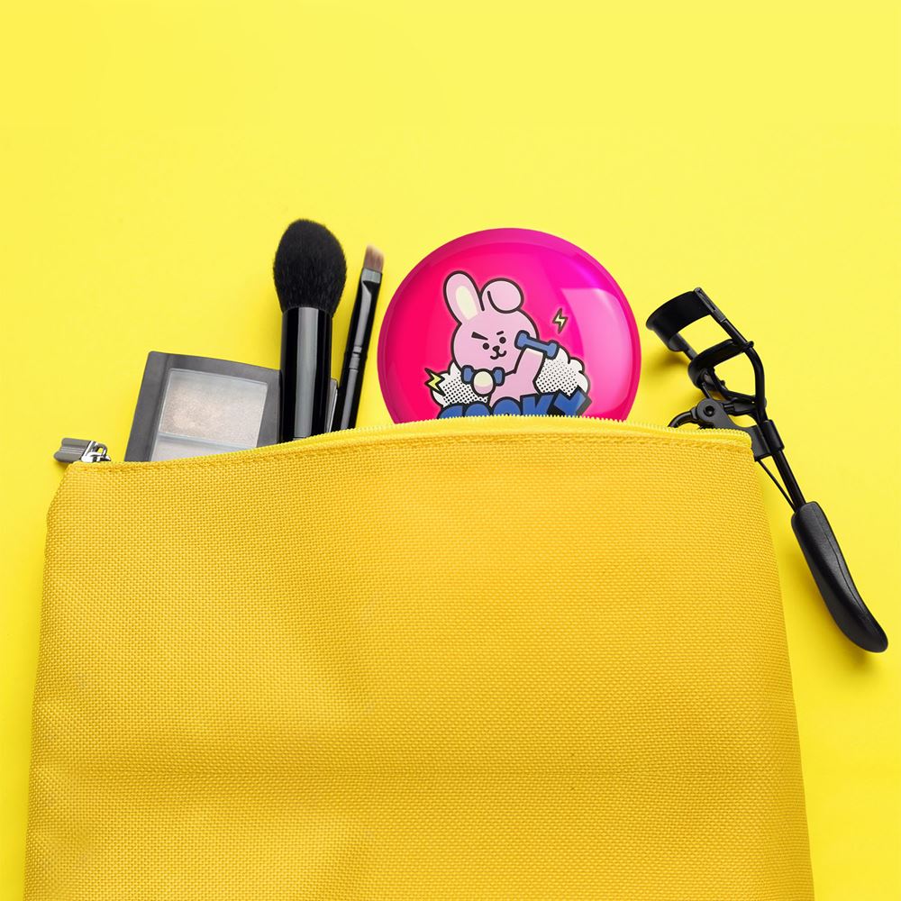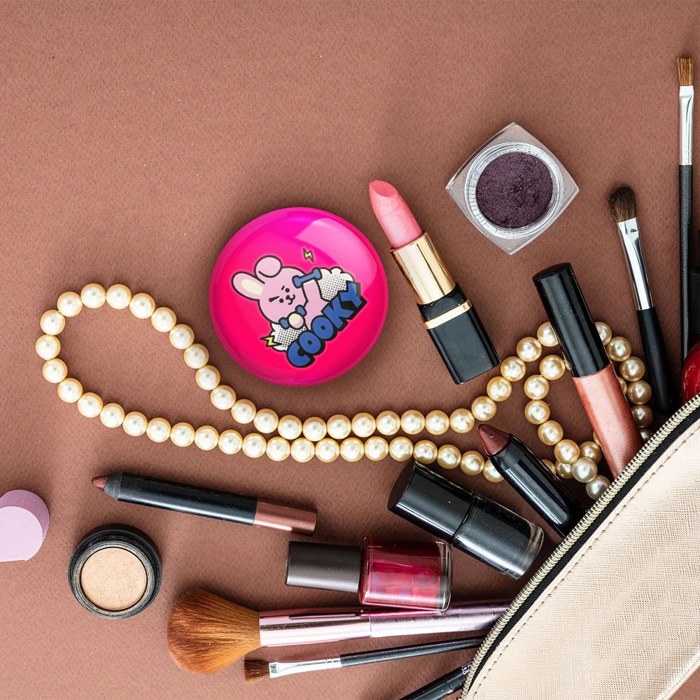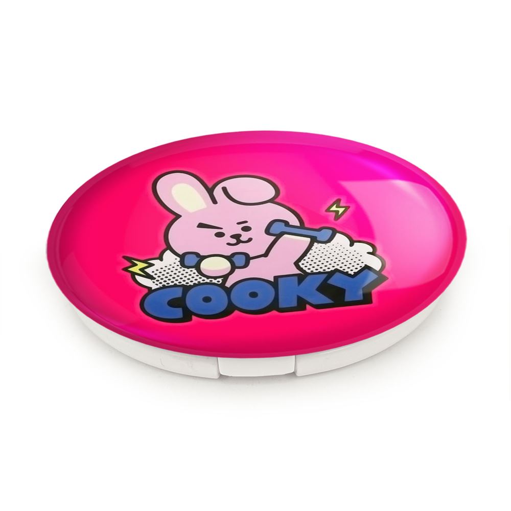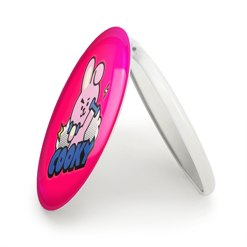 آینه های تاشو کوکی BT21 Cooky خندالو، از جنس پلاستیک فشرده ABS تولید شده و به رنگ سفید می باشد. یکی از آینه ها ابعاد واقعی را نشان داده و دیگری با قابلیت بزرگنمایی، جزئیات را بهتر نمایش می دهد.