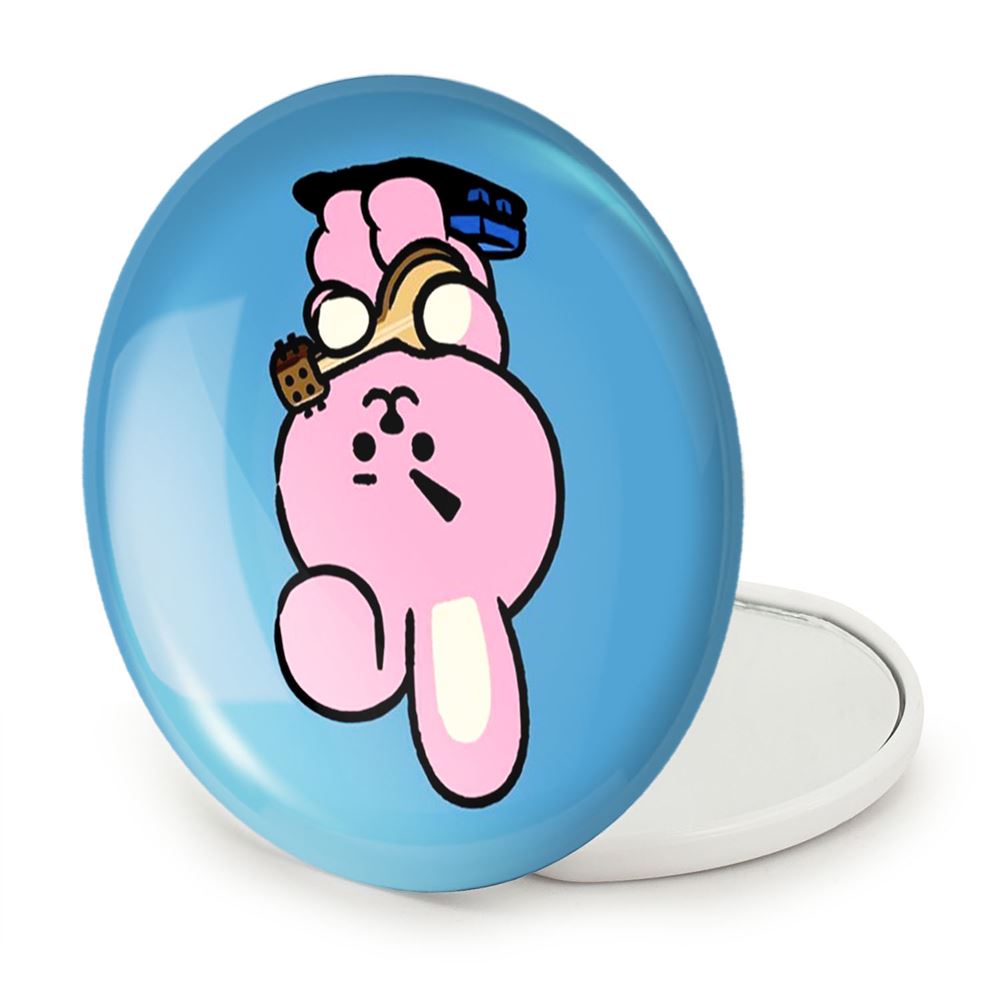 آینه های تاشو کوکی BT21 Cooky خندالو، از جنس پلاستیک فشرده ABS تولید شده و به رنگ سفید می باشد. یکی از آینه ها ابعاد واقعی را نشان داده و دیگری با قابلیت بزرگنمایی، جزئیات را بهتر نمایش می دهد.