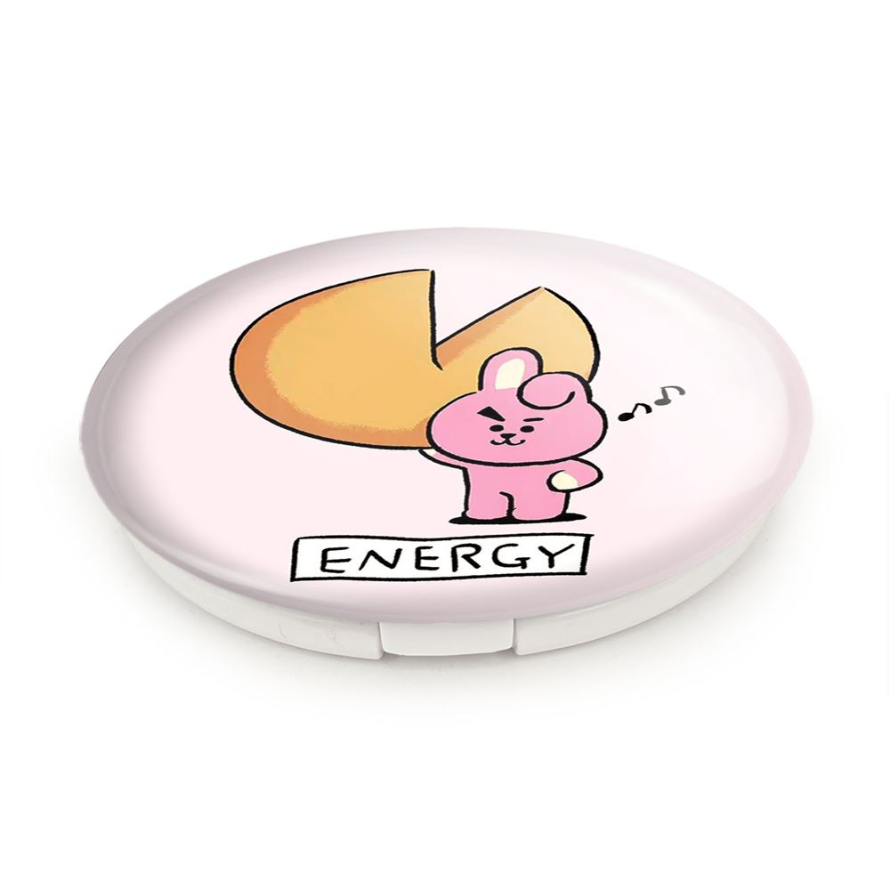 آینه های تاشو کوکی BT21 Cooky خندالو، از جنس پلاستیک فشرده ABS تولید شده و به رنگ سفید می باشد. یکی از آینه ها ابعاد واقعی را نشان داده و دیگری با قابلیت بزرگنمایی، جزئیات را بهتر نمایش می دهد.