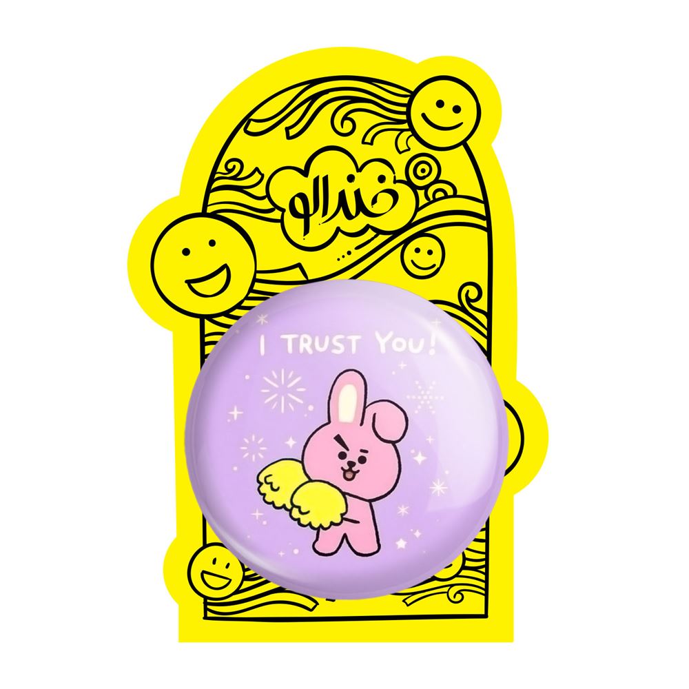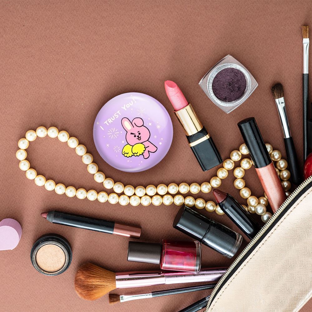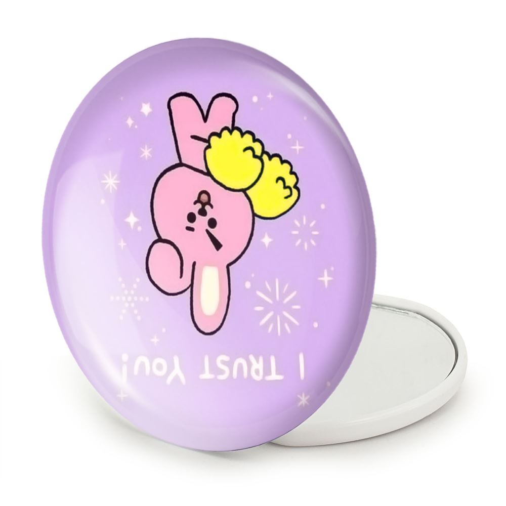 آینه های تاشو کوکی BT21 Cooky خندالو، از جنس پلاستیک فشرده ABS تولید شده و به رنگ سفید می باشد. یکی از آینه ها ابعاد واقعی را نشان داده و دیگری با قابلیت بزرگنمایی، جزئیات را بهتر نمایش می دهد.