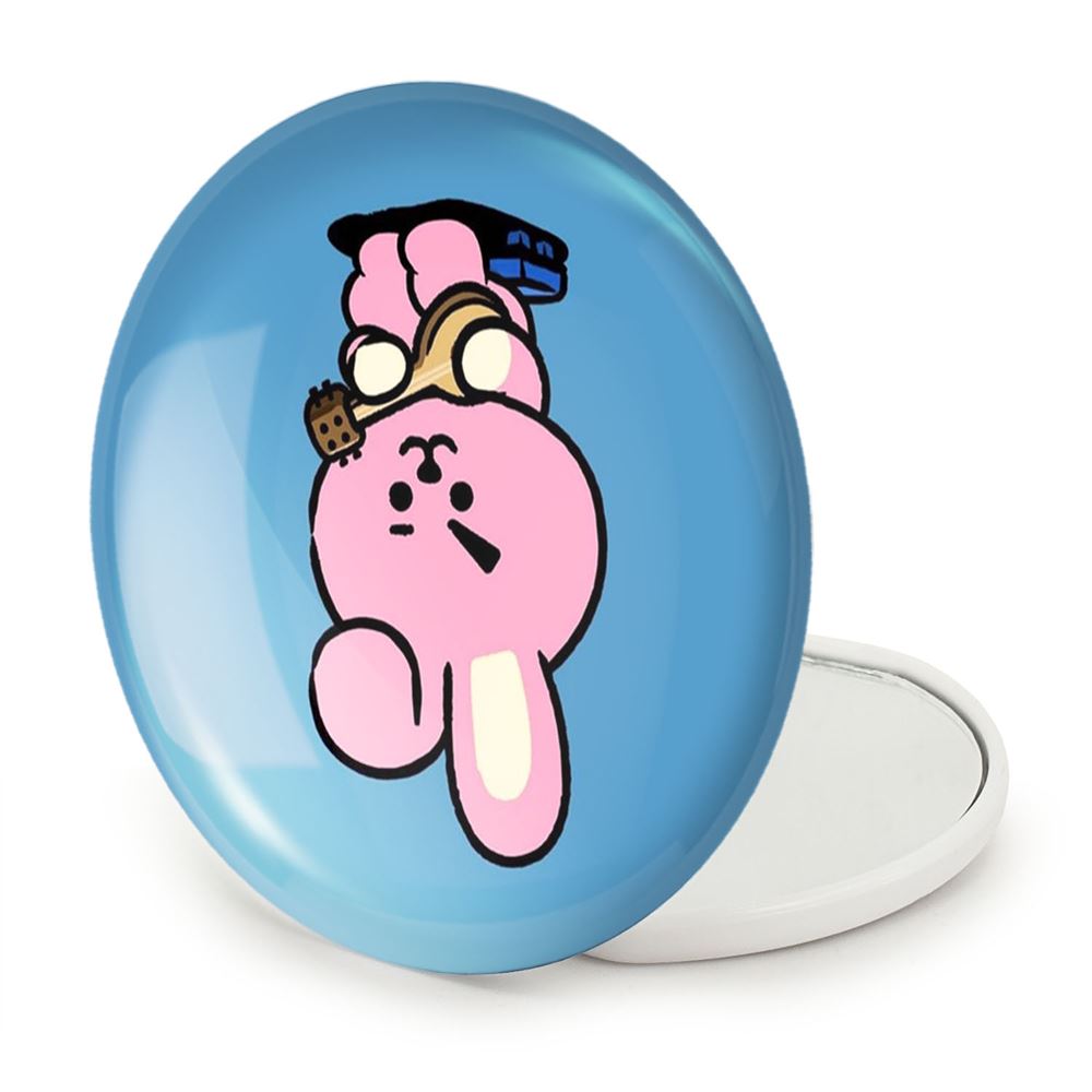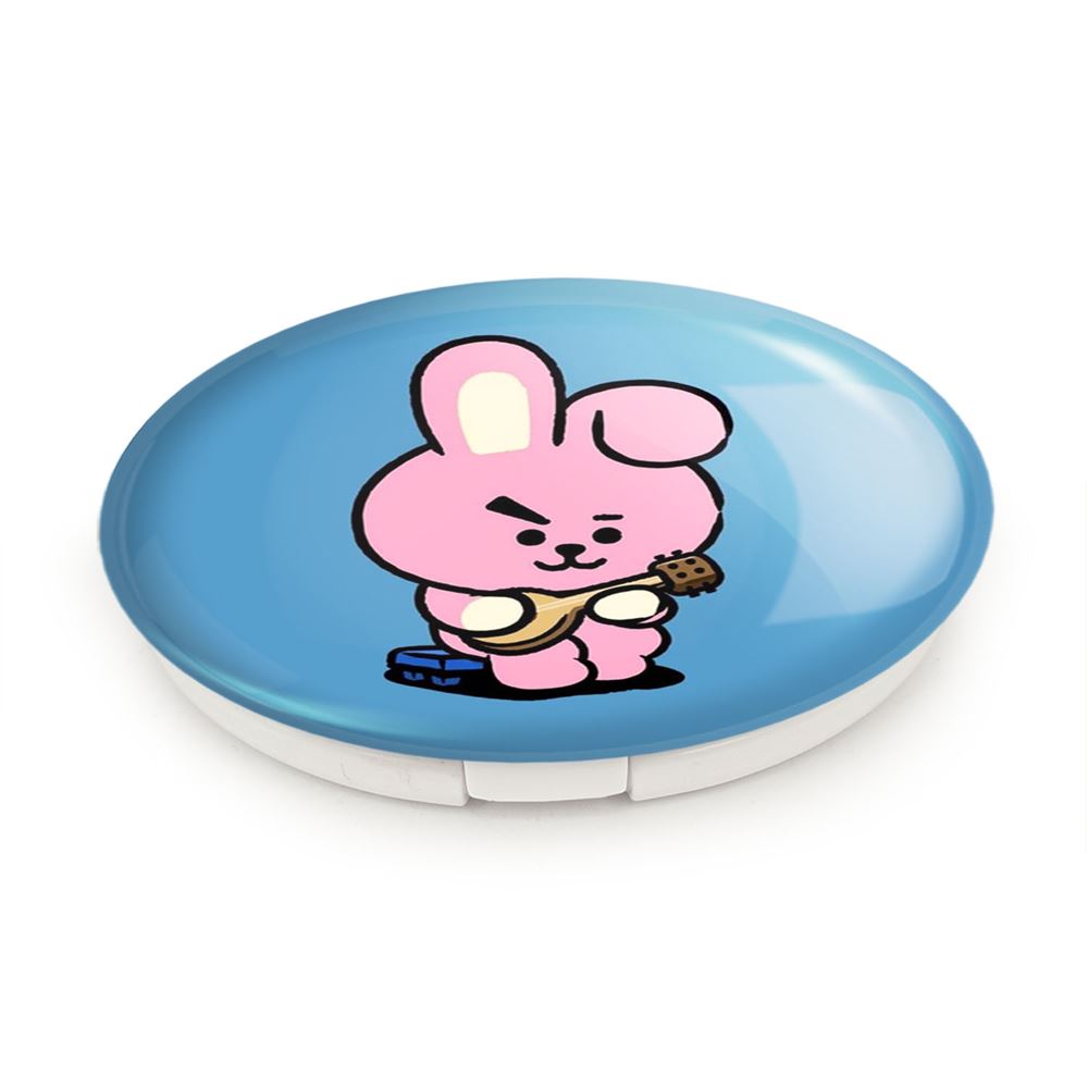 آینه های تاشو کوکی BT21 Cooky خندالو، از جنس پلاستیک فشرده ABS تولید شده و به رنگ سفید می باشد. یکی از آینه ها ابعاد واقعی را نشان داده و دیگری با قابلیت بزرگنمایی، جزئیات را بهتر نمایش می دهد.