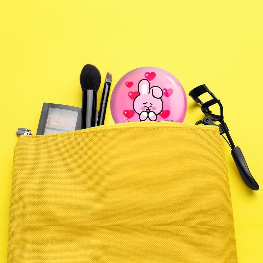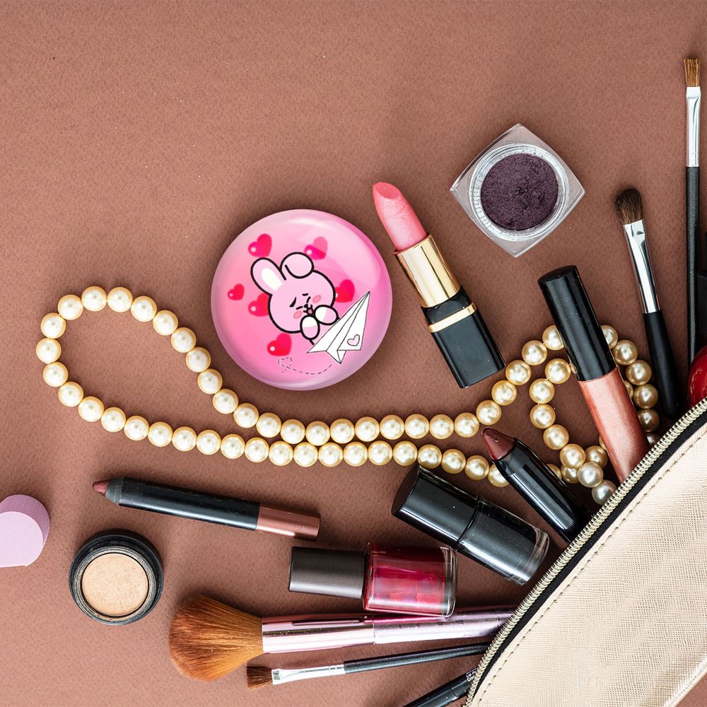 آینه های تاشو کوکی BT21 Cooky خندالو، از جنس پلاستیک فشرده ABS تولید شده و به رنگ سفید می باشد. یکی از آینه ها ابعاد واقعی را نشان داده و دیگری با قابلیت بزرگنمایی، جزئیات را بهتر نمایش می دهد.