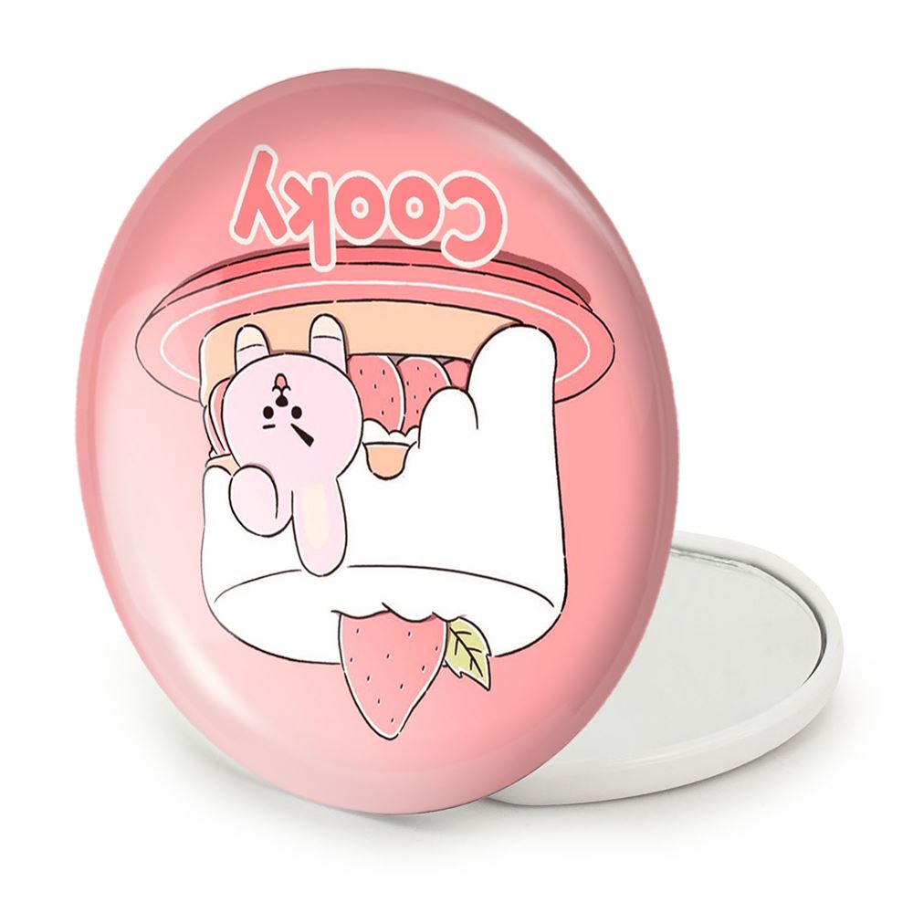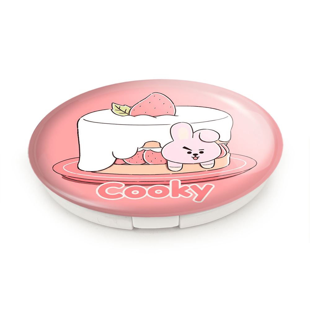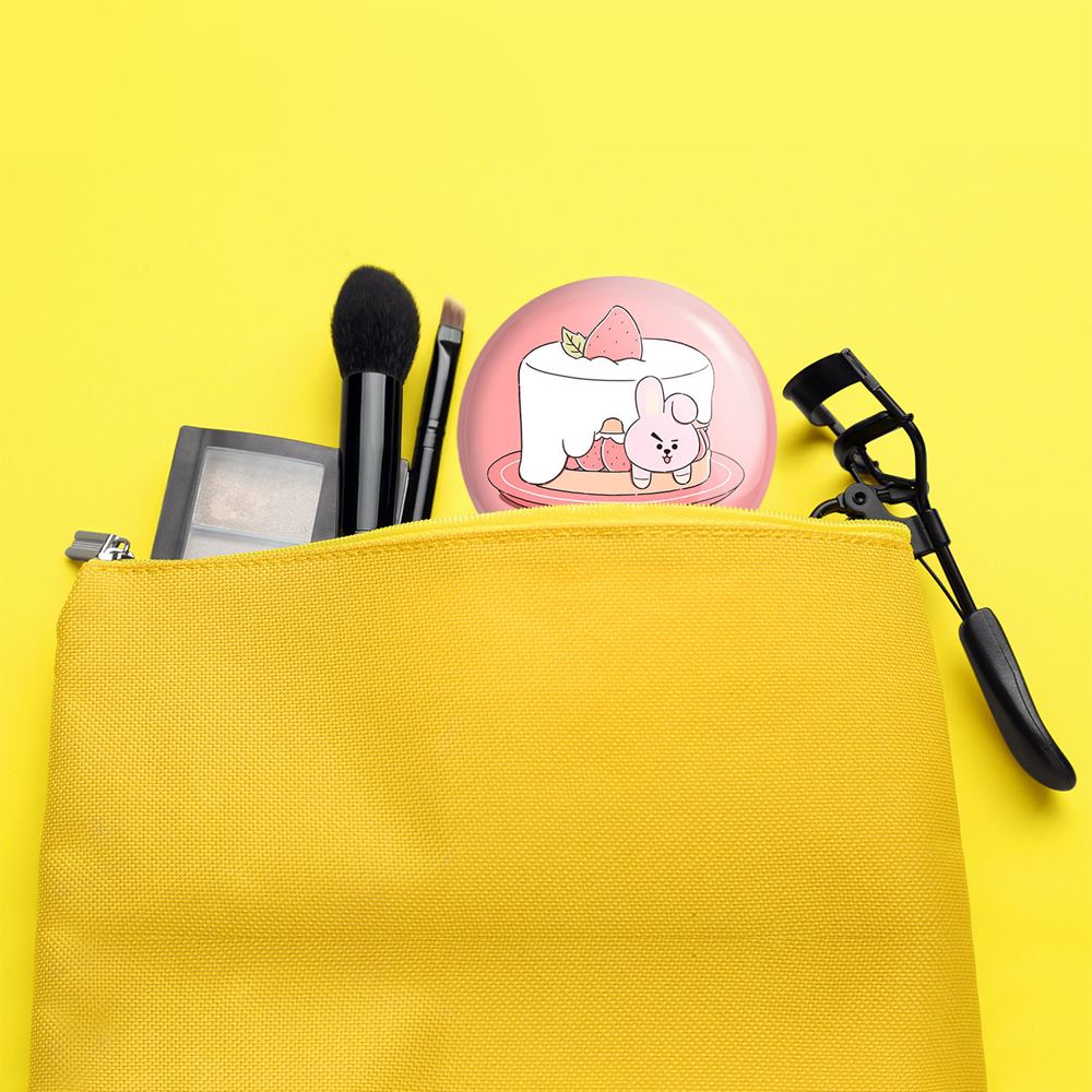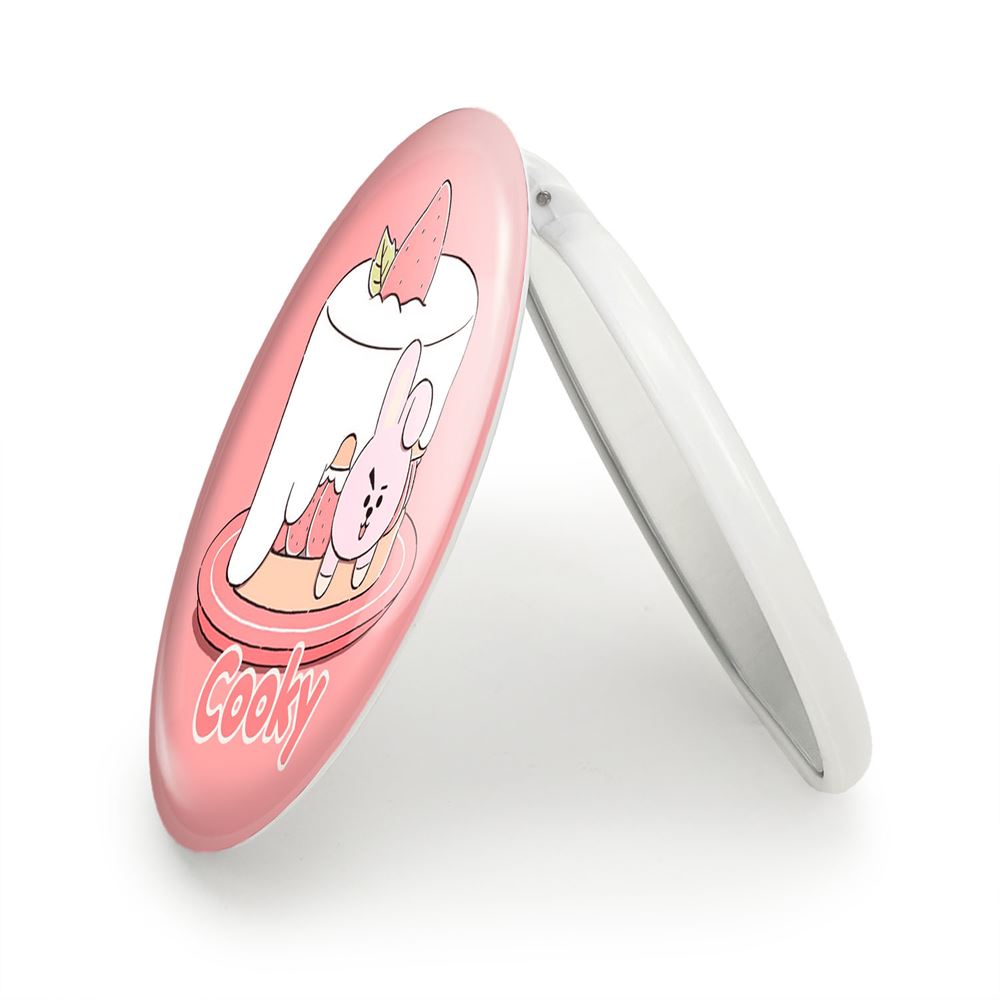آینه های تاشو کوکی BT21 Cooky خندالو، از جنس پلاستیک فشرده ABS تولید شده و به رنگ سفید می باشد. یکی از آینه ها ابعاد واقعی را نشان داده و دیگری با قابلیت بزرگنمایی، جزئیات را بهتر نمایش می دهد.