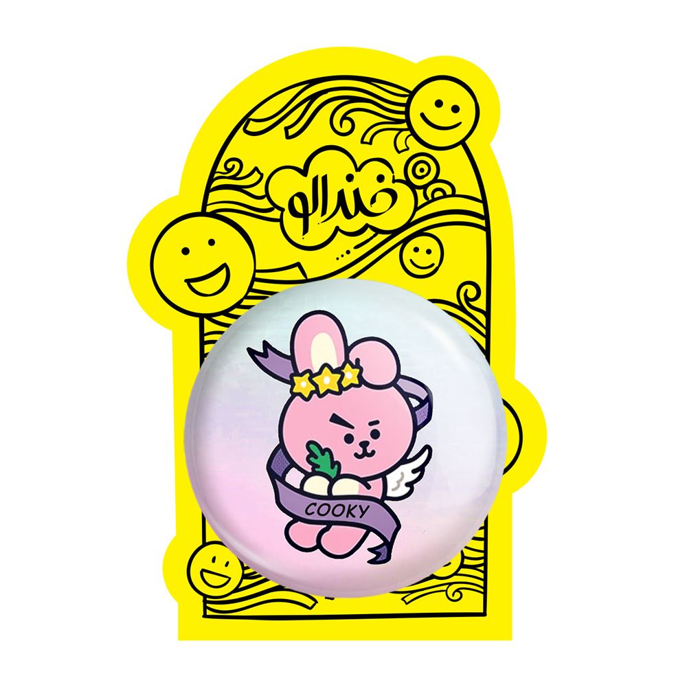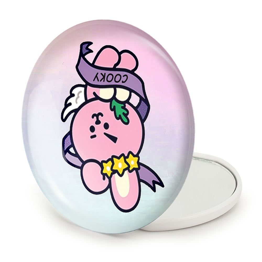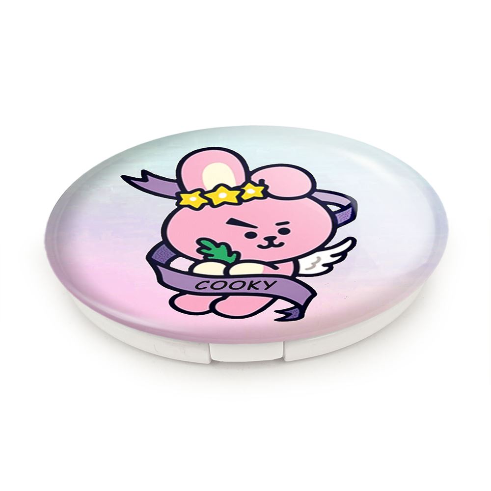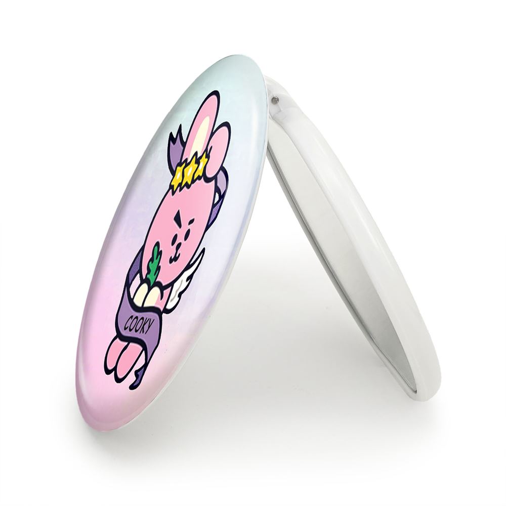 آینه های تاشو کوکی BT21 Cooky خندالو، از جنس پلاستیک فشرده ABS تولید شده و به رنگ سفید می باشد. یکی از آینه ها ابعاد واقعی را نشان داده و دیگری با قابلیت بزرگنمایی، جزئیات را بهتر نمایش می دهد. ابعاد هر یک از آینه ها، دایره ای به قطر 7.5 سانت می باشد که نه خیلی بزرگ و غیر قابل استفاده در کیف آرایشی ست و نه خیلی کوچک که تصویر خاصی در آن مشاهده نشود. آینه تاشو کوکی BT21 Cooky سایزی استاندارد و کارآمد دارد و در هر کیفی جا میگیرد. چاپ طرح بوسیله چاپگرهای دیجیتال شش رنگ با شفافیت و کیفیتی مثال زدنی بر روی یک وجه از بدنه ی آینه انجام گرفته و با روکش لمینت حرارتی پوشیده شده که در مقابل آسیب و خط و خش مقاوم بوده و کیفیت بالایی دارد. درب آینه بوسیله قفل بدنه ی آن، باز نمی ماند و کاملا بسته می شود و مناسب قرار گیری در کیف لوازم آرایش و کیف های کوچک دستی نیز هست. آینه های تاشو کوکی BT21 Cooky خندالو با تنوع طرحی بسیار بالا، سلیقه هر نوع مخاطبی را تامین میکند.